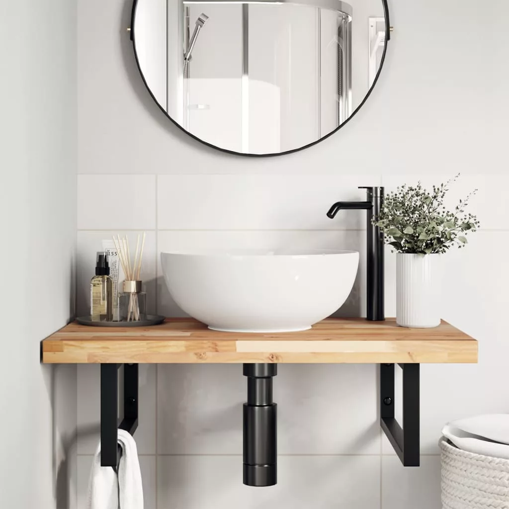 Frissítse fel fürdőszobáját ezzel a fából készült fürdőszobapulttal, és vigyen egy kis rusztikus bájt a berendezésbe! Robusztus és stabil anyag: A tömör akácfa az erősségéről és tartósságáról ismert. Változatos színeinek és egyedi erezetmintájának köszönhetően vonzó megjelenésű. Jó stabilitásának és időjárás-állóságának köszönhetően ideális beltéri és kültéri bútorok készítéséhez.Kezeletlen felület: Mivel ez a munkapult kezeletlen akácfából készült, megőrizheti természetes színét, vagy testreszabhatja festékkel vagy lakkal, hogy megfeleljen ízlésének.Sokoldalú felhasználás: Ez a többfunkciós munkalap különféle talpakkal párosítható számos felhasználási területhez, mint például konyhai munkaállomás, garázs munkapad, fürdőszobai polc, vagy asztallap.Könnyen karbantartható: Sima felületének köszönhetően a munkapult nedves ruhával könnyen tisztítható, és kevesebb gondozást igényel. Jó tudni:Minden termék egyedi, a szín és az erezet változik. A kiszállítás véletlenszerűen történik, biztosítva terméke exkluzivitását és egyediségét.