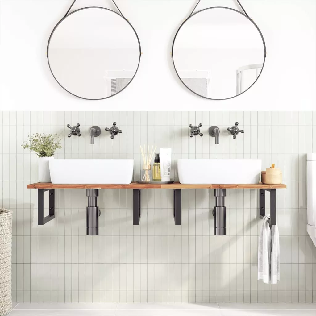 Frissítse fel fürdőszobáját ezzel a fából készült fürdőszobapulttal, és vigyen egy kis rusztikus bájt a berendezésbe! Robusztus és stabil anyag: A tömör akácfa az erősségéről és tartósságáról ismert. Változatos színeinek és egyedi erezetmintájának köszönhetően vonzó megjelenésű. Jó stabilitásának és időjárás-állóságának köszönhetően ideális beltéri és kültéri bútorok készítéséhez.Olajbevonatos felület: Ez a munkapult akácfából készült, olajos bevonattal, amely ellenállóbbá teszi a nedvességgel és a vízkárral szemben, miközben megőrzi egyedi karakterét.Sokoldalú felhasználás: Ez a többfunkciós munkalap különféle talpakkal párosítható számos felhasználási területhez, mint például konyhai munkaállomás, garázs munkapad, fürdőszobai polc, vagy asztallap.Könnyű karbantartás: Sima felületének köszönhetően a munkapult könnyen tisztítható nedves ruhával. Jó tudni:Minden termék egyedi, a szín és az erezet változik. A kiszállítás véletlenszerűen történik, biztosítva terméke exkluzivitását és egyediségét.A minőség és a megjelenés megőrzése érdekében ajánlatos évente legalább egyszer újra felvinni egy olajréteget.