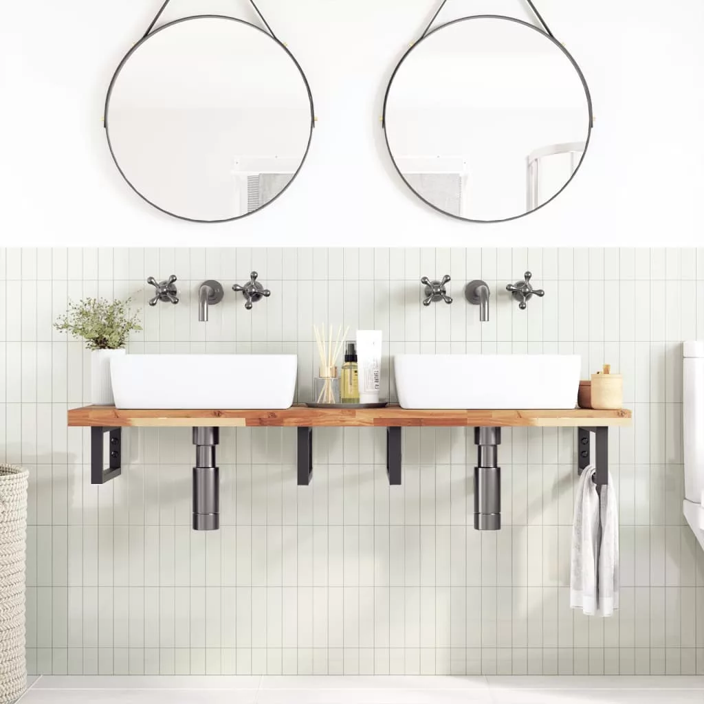 Frissítse fel fürdőszobáját ezzel a fából készült fürdőszobapulttal, és vigyen egy kis rusztikus bájt a berendezésbe! Robusztus és stabil anyag: A tömör akácfa az erősségéről és tartósságáról ismert. Változatos színeinek és egyedi erezetmintájának köszönhetően vonzó megjelenésű. Jó stabilitásának és időjárás-állóságának köszönhetően ideális beltéri és kültéri bútorok készítéséhez.Olajbevonatos felület: Ez a munkapult akácfából készült, olajos bevonattal, amely ellenállóbbá teszi a nedvességgel és a vízkárral szemben, miközben megőrzi egyedi karakterét.Sokoldalú felhasználás: Ez a többfunkciós munkalap különféle talpakkal párosítható számos felhasználási területhez, mint például konyhai munkaállomás, garázs munkapad, fürdőszobai polc, vagy asztallap.Könnyű karbantartás: Sima felületének köszönhetően a munkapult könnyen tisztítható nedves ruhával. Jó tudni:Minden termék egyedi, a szín és az erezet változik. A kiszállítás véletlenszerűen történik, biztosítva terméke exkluzivitását és egyediségét.A minőség és a megjelenés megőrzése érdekében ajánlatos évente legalább egyszer újra felvinni egy olajréteget.