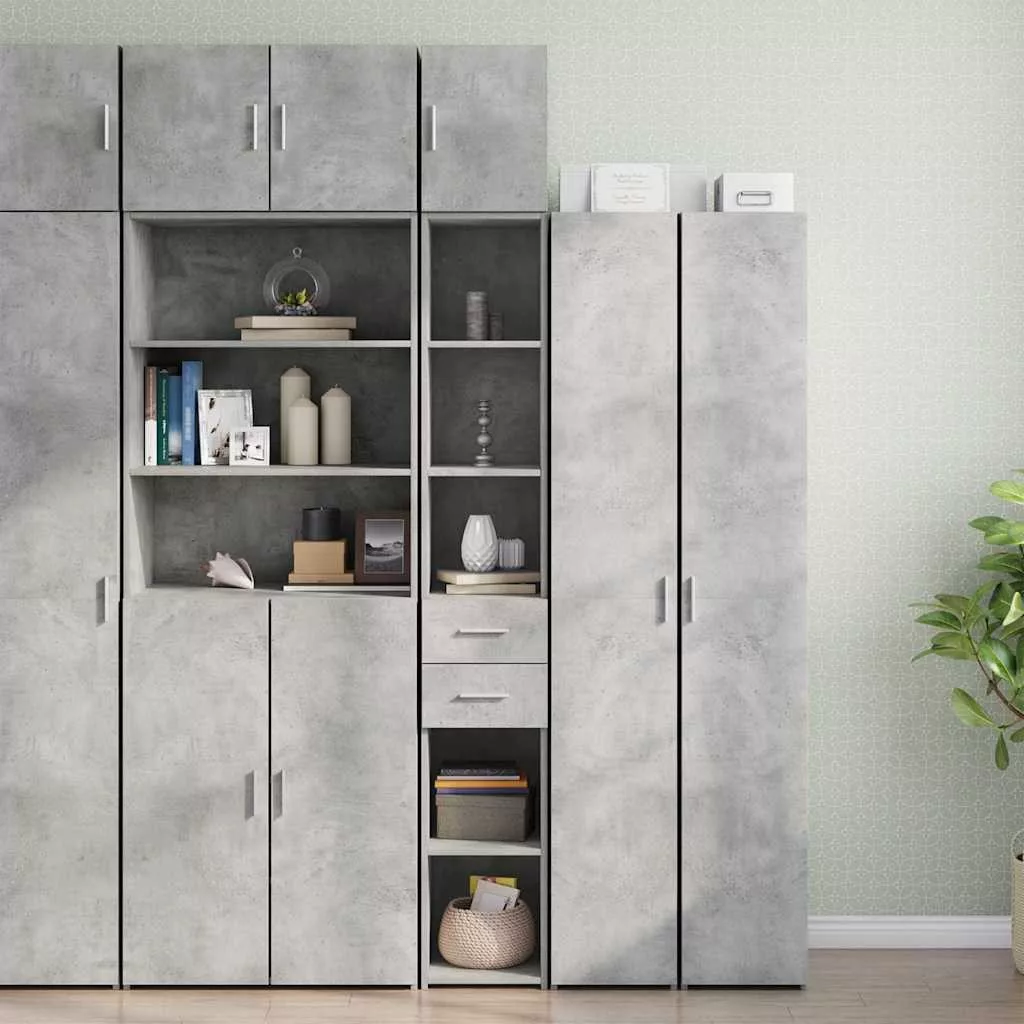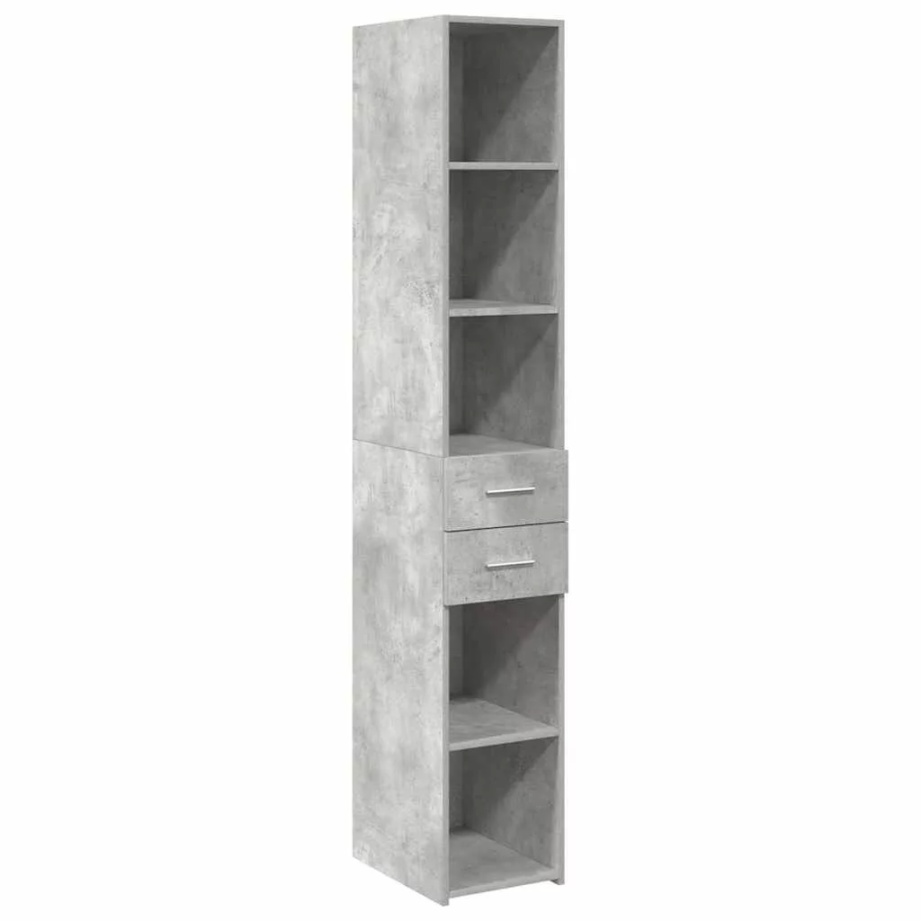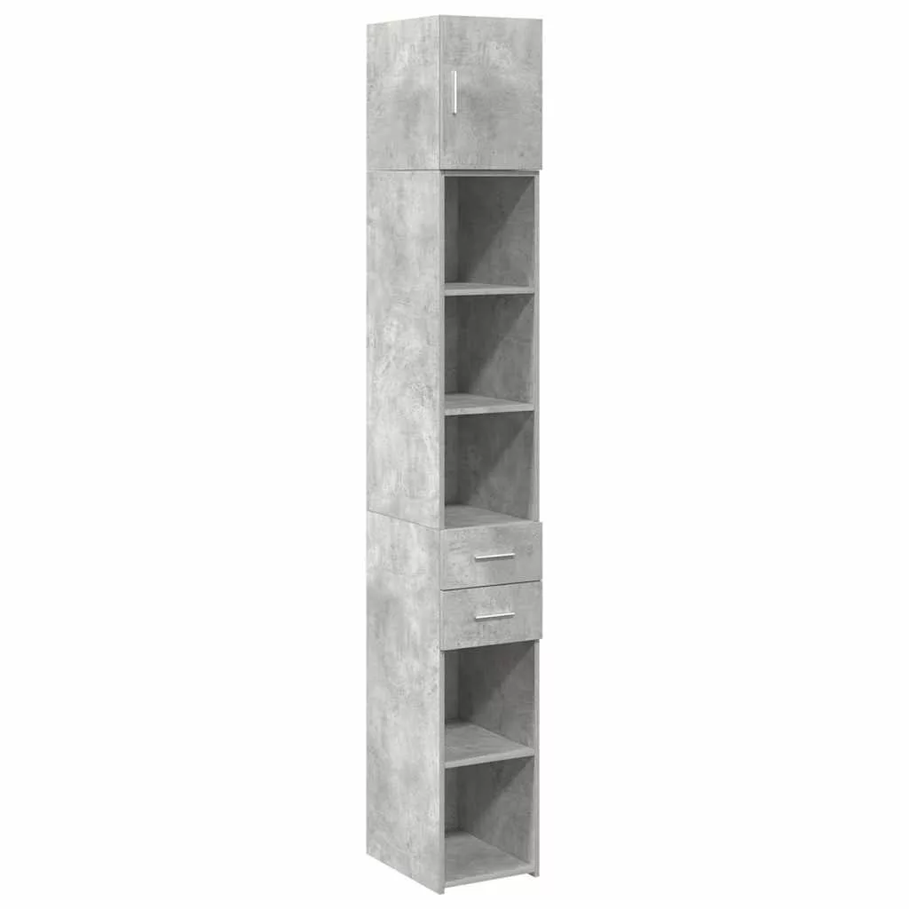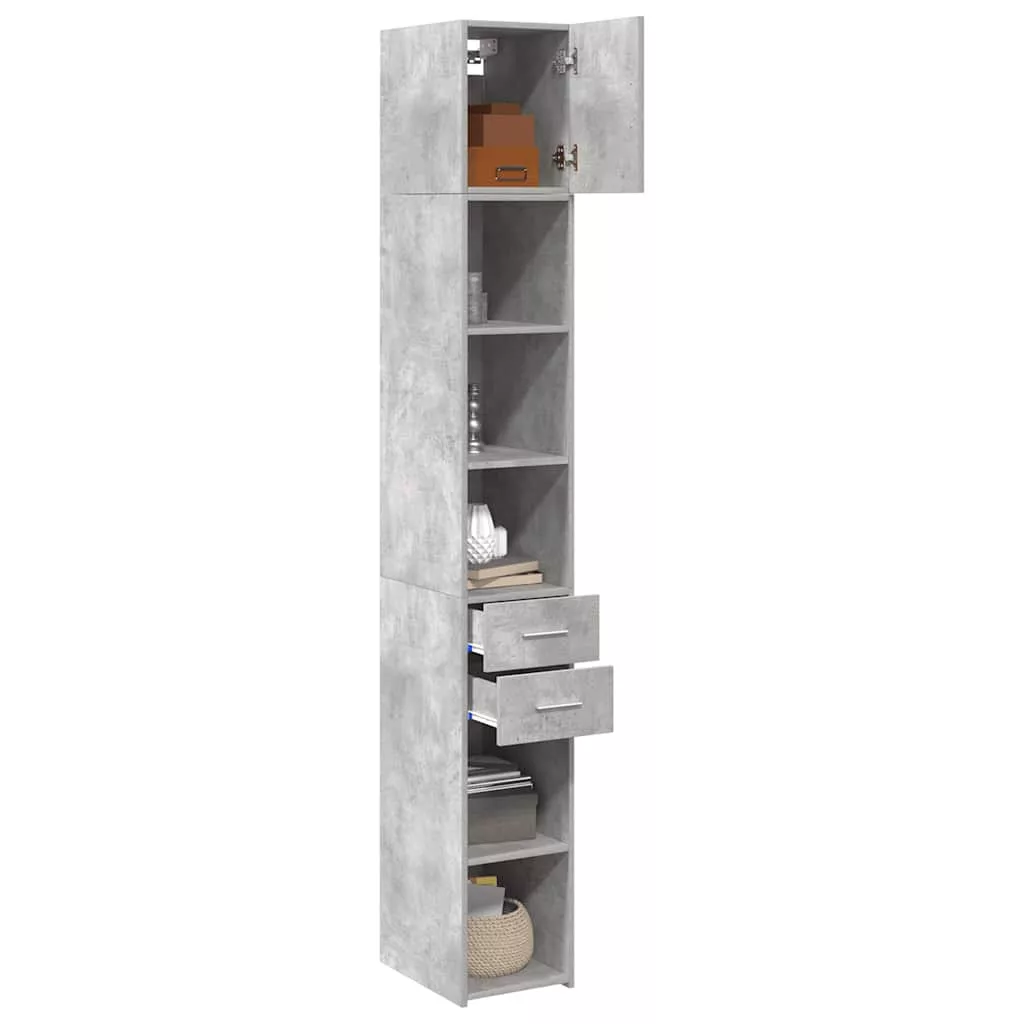 betonszürke szerelt fa vékony tárolószekrény 30 x 42,5 x 225 cm
