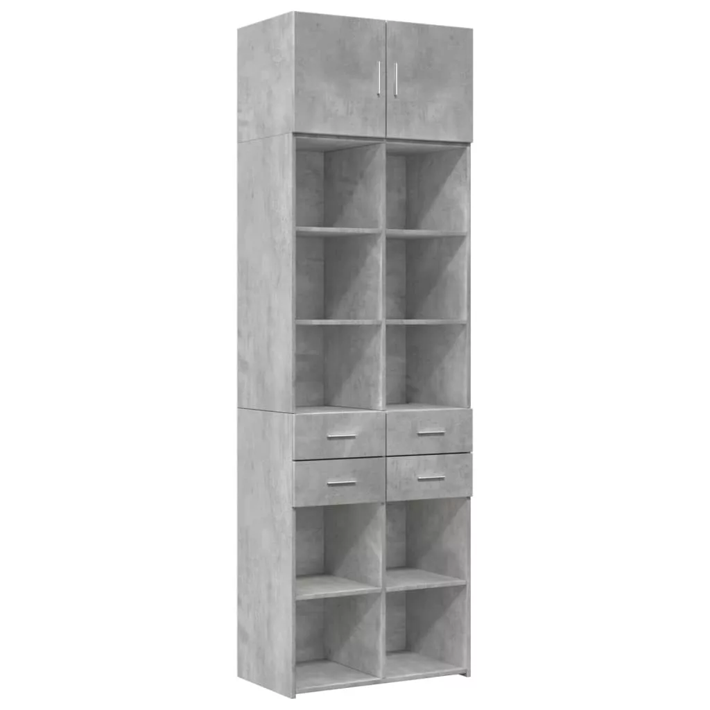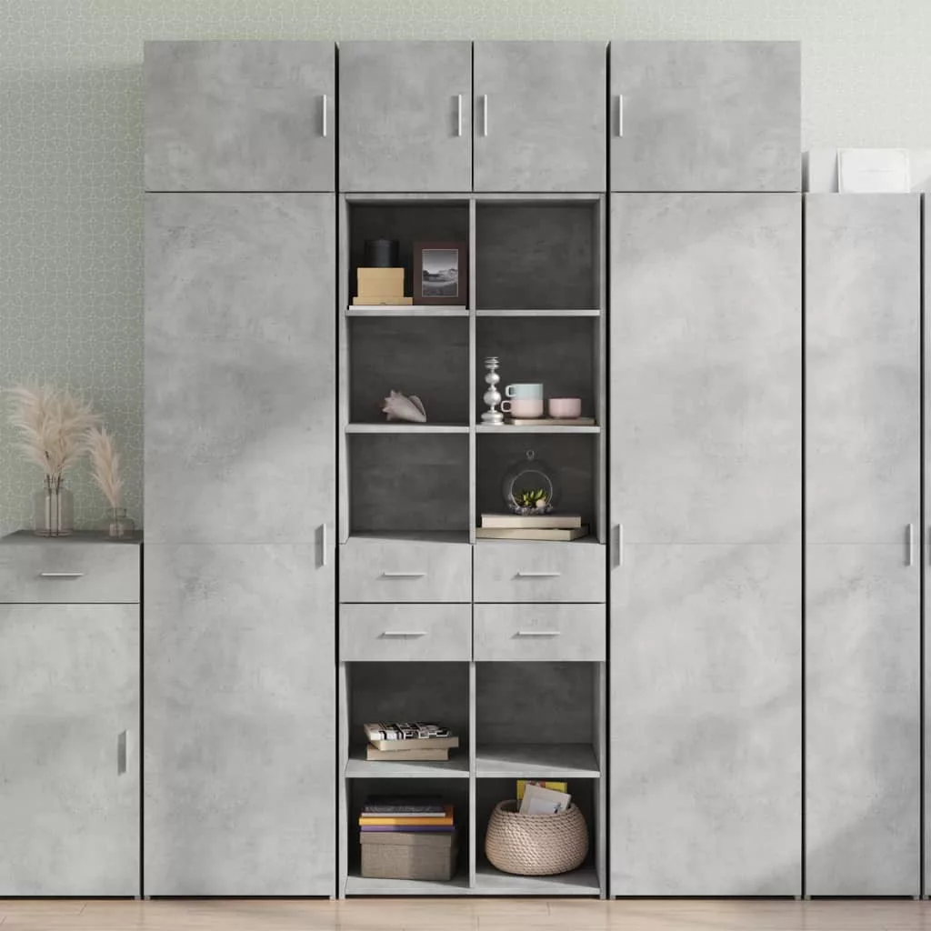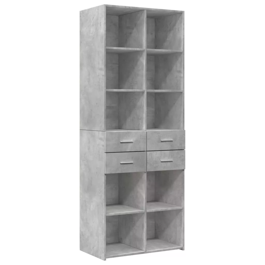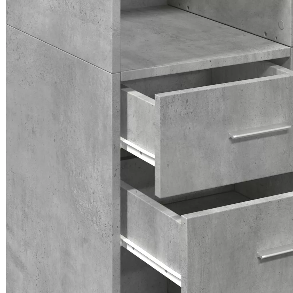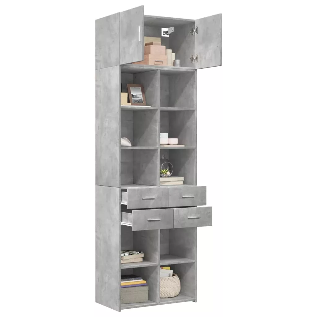 betonszürke szerelt fa tárolószekrény 70 x 42,5 x 225 cm
