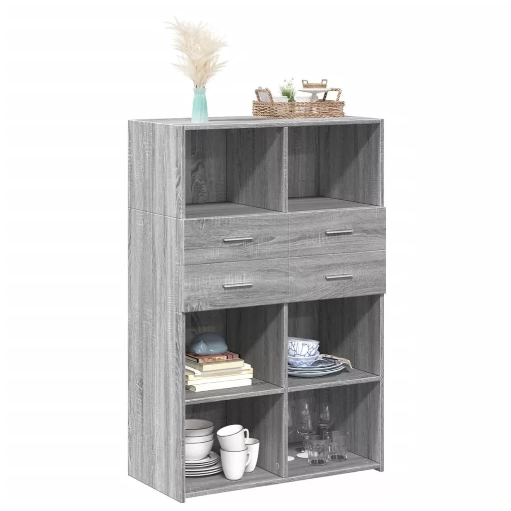 szürke sonoma színű szerelt fa magasszekrény 80 x 42,5 x 124 cm