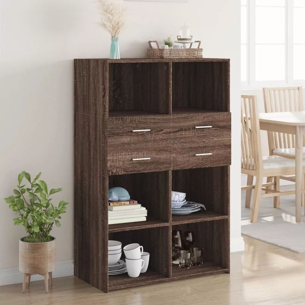 barna tölgy színű szerelt fa magasszekrény 80 x 42,5 x 124 cm