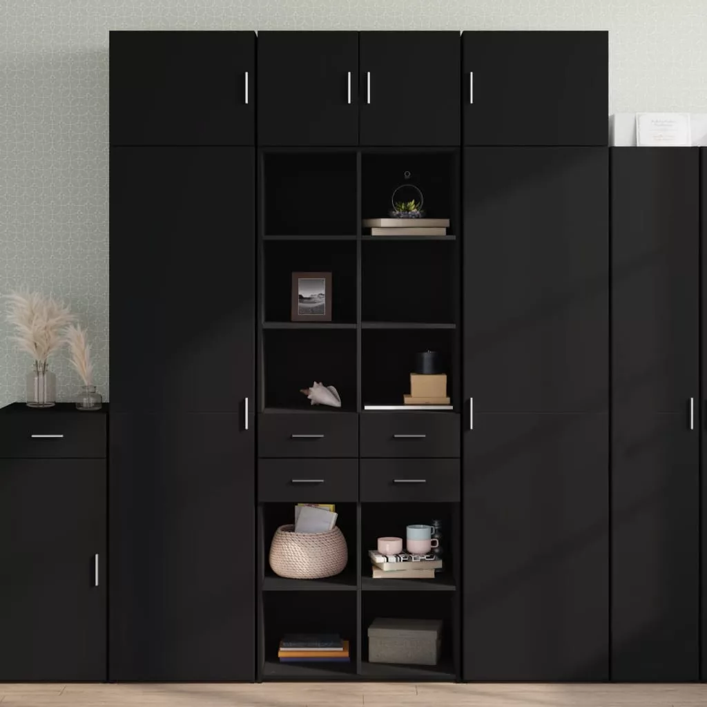 fekete szerelt fa magasszekrény 70 x 42,5 x 185 cm