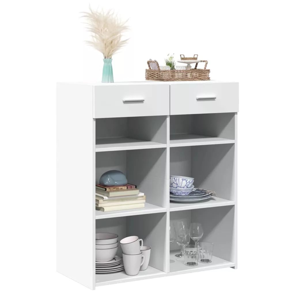 Ez a klasszikus tálalószekrény otthona dekoratív és praktikus kiegészítője lesz. Hosszú élettartamú anyag: A szerelt fa kivételes minőségű, sima felületű, szilárd, stabil, és ellenáll a nedvességnek.Bőséges tárolóhely: Ez a tálalószekrény 2 fiókkal rendelkezik, így bőséges helyet biztosít alapvető holmijai kézközelben történő rendezett tárolásához. Könnyen tisztítható: A tálaló könnyen tisztítható nedves ruhával, és kevés karbantartást igényel.Figyelem:A felborulás elkerülése érdekében ezt a terméket a mellékelt fali rögzítőeszközzel kell használni.