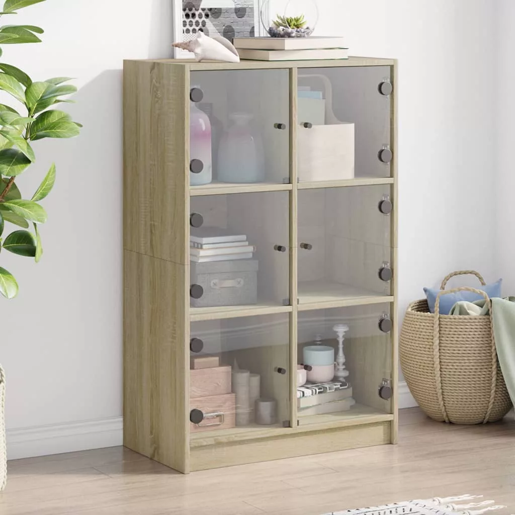 sonoma tölgy színű magasszekrény ajtókkal 68 x 37 x 109 cm