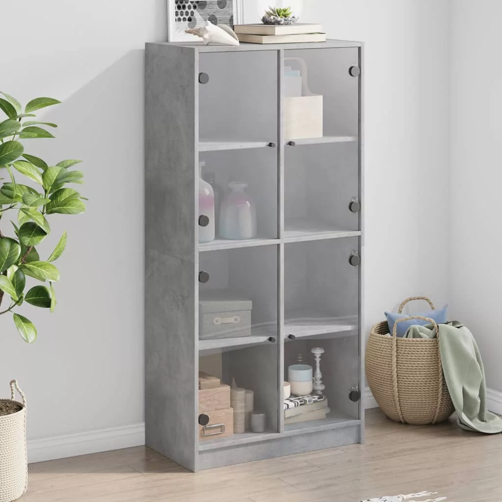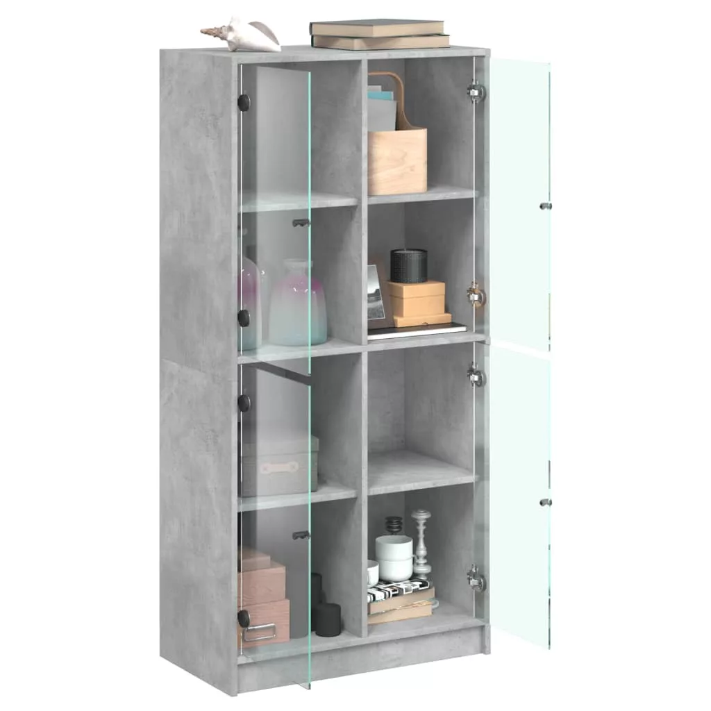 betonszürke szerelt fa magasszekrény ajtókkal 68x37x142 cm