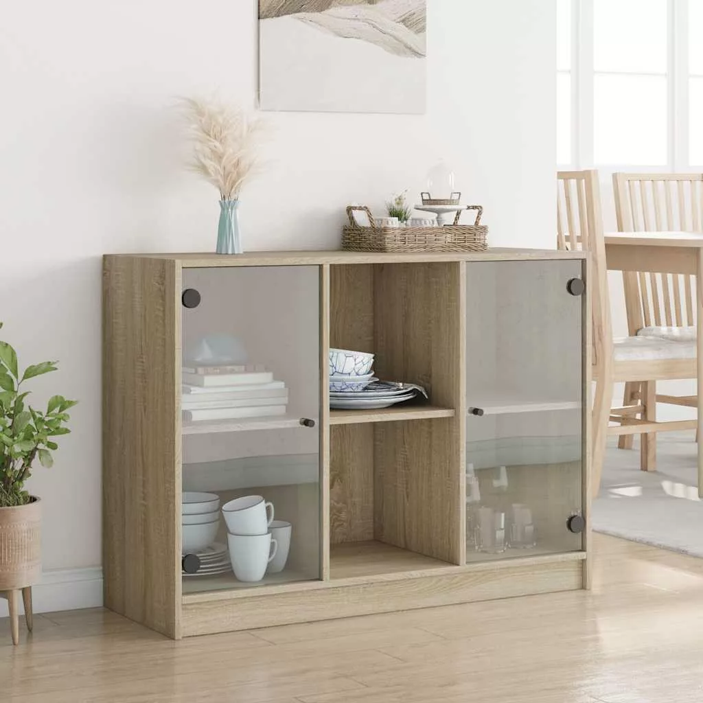 Ez a tálalószekrény ideális megoldást kínál könyvei rendezett tárolásához, miközben egy csipetnyi modern bájt csempész otthonába. Tartós és masszív anyag: A szerelt fa kivételes minőségű, sima felületű, szilárd, stabil, és ellenáll a nedvességnek.Bőséges tárolóhely: A kisszekrény bőséges helyet kínál könyvek, magazinok és iratok rendezett tárolásához.Stabil és robusztus felső rész: A tárolószekrény teteje tökéletes dísztárgyak, képkeretek és cserepes növények elhelyezésére.Praktikus kialakítás: Tartsa pormentesen legfontosabb dolgait az ajtók mögé rejtve őket. Emellett a fekete fogantyúk megkönnyítik a kissszekrény kinyitását. Figyelem:A felborulás elkerülése érdekében ezt a terméket a mellékelt fali rögzítőeszközzel kell használni.