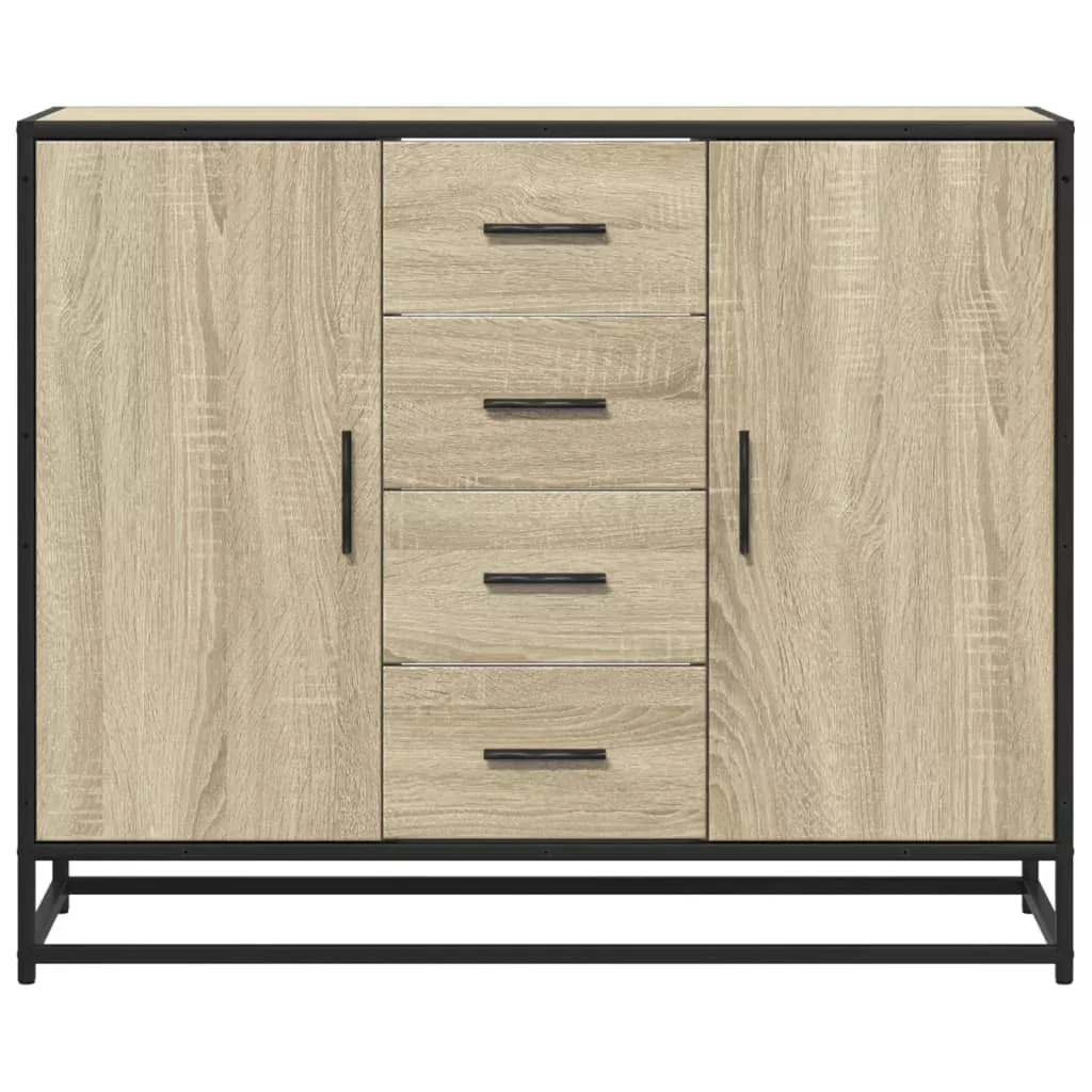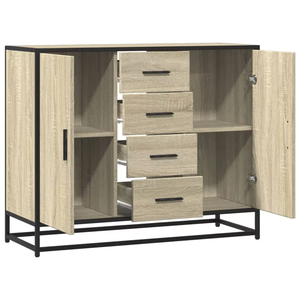 Ez a praktikus tervezésű tálalószekrény minden bizonnyal otthona fénypontja lesz. Stabil és tartós anyag: A szerelt fa tartós és stabil anyag sima felülettel, amely ellenáll a nedvességnek, a vetemedésnek és a hasadásnak, így megbízható választás különféle projektekhez.Stabil és hosszú élettartamú váz: A tárolószekrény fém váza ipari stílust visz otthonába, és kivételes tartósságot, stabilitást, és korrózióállóságot biztosít.Bőséges tárolóhely: A szekrény bőséges helyet biztosít alapvető holmijai kézközelben történő rendezett tárolásához.Széleskörű felhasználás: Ez a sokoldalú tálalószekrény igényeinek megfelelően hálószobában, nappaliban, folyosón, és máshol is használható.Könnyen karbantartható: Sima felületének köszönhetően a szekrény nedves ruhával könnyen tisztítható, és kevesebb gondozást igényel. Figyelem:A felborulás elkerülése érdekében ezt a terméket a mellékelt fali rögzítőeszközzel kell használni.