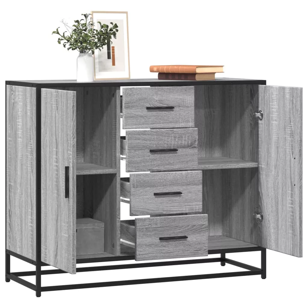 szürke sonoma színű szerelt fa tálalószekrény 92 x 35 x 76 cm