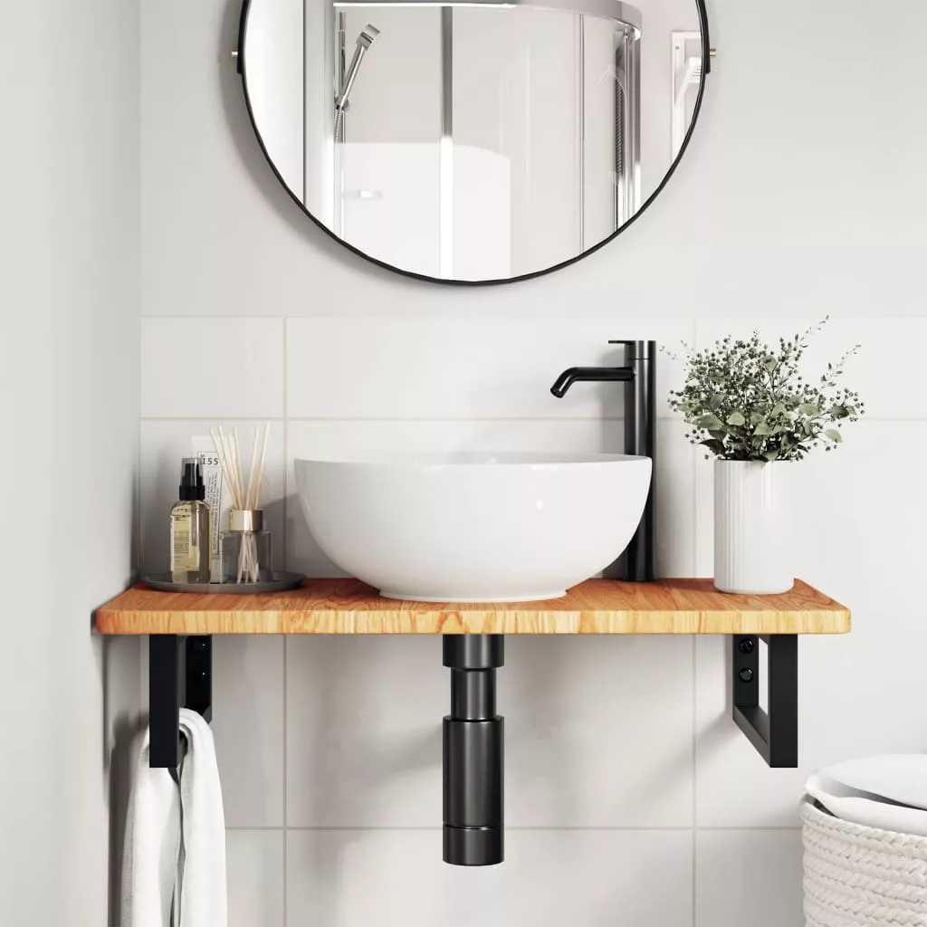 A falra szerelhető mosdópolc biztonságosan a falhoz rögzíthető, elegáns és helytakarékos megoldást nyújtva fürdőszobájának. Erős és tartós: Ez a mosdópolc acélszerkezettel és tömör tölgyfa lappal lett ellátva, így erős, stabil és hosszú élettartamú. Helytakarékos: A lebegő mosdókagylópolcon bőséges hely van krémek és apróbb tárgyak tárolására. A téglalap alakú formának köszönhetően törölközőket vagy egyéb dolgokat akaszthat a tartóra, hogy helyet takarítson meg. Könnyen használható: A munkalap fúratlan, így a mosdó balra, jobbra vagy középre szerelhető, a helyiség igényeitől függően. A tartóba előre fúrt furatoknak köszönhetően könnyen összeszerelhető az asztallappal és a falra szerelhető. Széleskörű felhasználási terület: Modern kialakításának köszönhetően további helyet biztosít különféle típusú fürdőszobáknak. Jó tudni:A csavarokat nem tartalmazza, a csavarokat megvásárolhatja külön az alábbi információk alapján. Fali rögzítés: konzolonként 2 db M8 feszítőcsavar Fa lap: 2 db M5x18 csavar (T=2) vagy 2 db M5x20 csavar (T=2,5/4cm) konzolonként