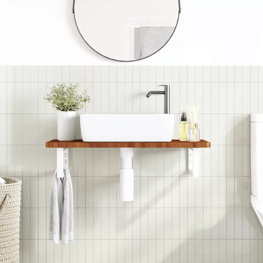 A falra szerelhető mosdópolc biztonságosan a falhoz rögzíthető, elegáns és helytakarékos megoldást nyújtva fürdőszobájának. Erős és tartós: Ez a mosdópolc acélszerkezettel és tömör tölgyfa lappal lett ellátva, így erős, stabil és hosszú élettartamú. Helytakarékos: A lebegő mosdókagylópolcon bőséges hely van krémek és apróbb tárgyak tárolására. A téglalap alakú formának köszönhetően törölközőket vagy egyéb dolgokat akaszthat a tartóra, hogy helyet takarítson meg. Könnyen használható: A munkalap fúratlan, így a mosdó balra, jobbra vagy középre szerelhető, a helyiség igényeitől függően. A tartóba előre fúrt furatoknak köszönhetően könnyen összeszerelhető az asztallappal és a falra szerelhető. Széleskörű felhasználási terület: Modern kialakításának köszönhetően további helyet biztosít különféle típusú fürdőszobáknak. Jó tudni:A csavarokat nem tartalmazza, a csavarokat megvásárolhatja külön az alábbi információk alapján. Fali rögzítés: konzolonként 2 db M8 feszítőcsavar Fa lap: 2 db M5x18 csavar (T=2) vagy 2 db M5x20 csavar (T=2,5/4cm) konzolonként