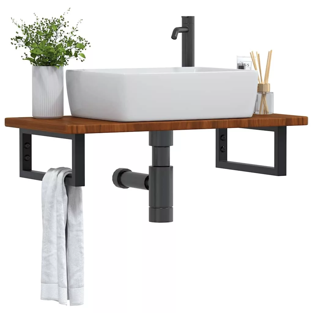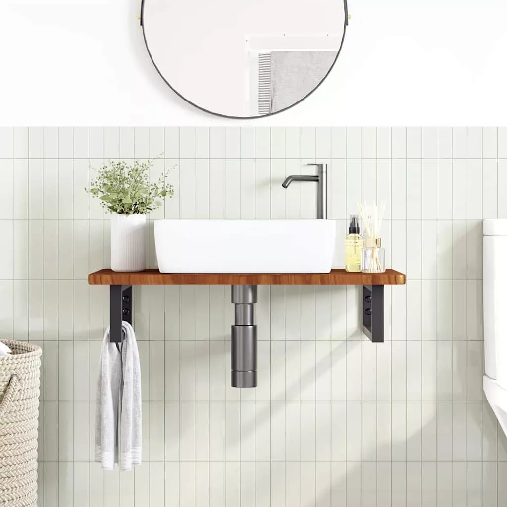 A falra szerelhető mosdópolc biztonságosan a falhoz rögzíthető, elegáns és helytakarékos megoldást nyújtva fürdőszobájának. Erős és tartós: Ez a mosdópolc acélszerkezettel és tömör tölgyfa lappal lett ellátva, így erős, stabil és hosszú élettartamú. Helytakarékos: A lebegő mosdókagylópolcon bőséges hely van krémek és apróbb tárgyak tárolására. A téglalap alakú formának köszönhetően törölközőket vagy egyéb dolgokat akaszthat a tartóra, hogy helyet takarítson meg. Könnyen használható: A munkalap fúratlan, így a mosdó balra, jobbra vagy középre szerelhető, a helyiség igényeitől függően. A tartóba előre fúrt furatoknak köszönhetően könnyen összeszerelhető az asztallappal és a falra szerelhető. Széleskörű felhasználási terület: Modern kialakításának köszönhetően további helyet biztosít különféle típusú fürdőszobáknak. Jó tudni:A csavarokat nem tartalmazza, a csavarokat megvásárolhatja külön az alábbi információk alapján. Fali rögzítés: konzolonként 2 db M8 feszítőcsavar Fa lap: 2 db M5x18 csavar (T=2) vagy 2 db M5x20 csavar (T=2,5/4cm) konzolonként