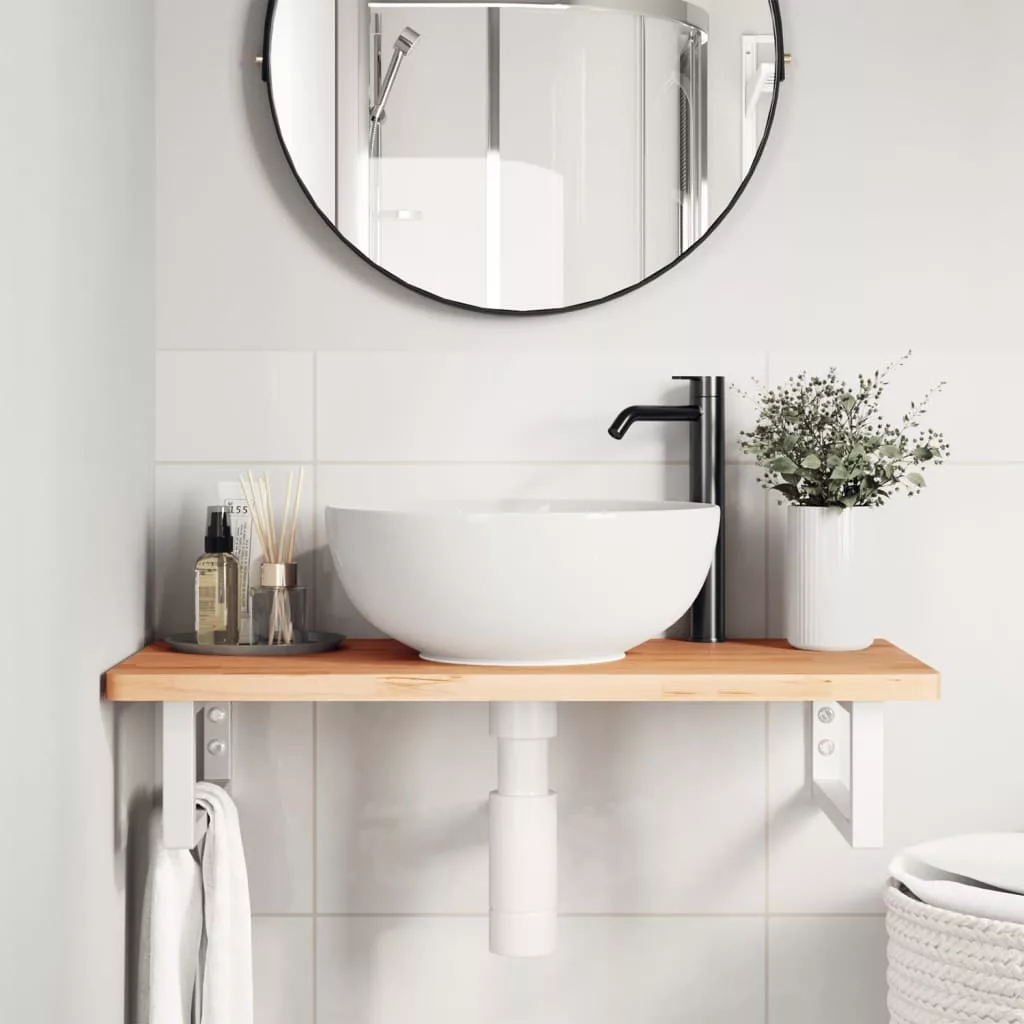 acél és tömör bükkfa falra szerelhető mosdópolc