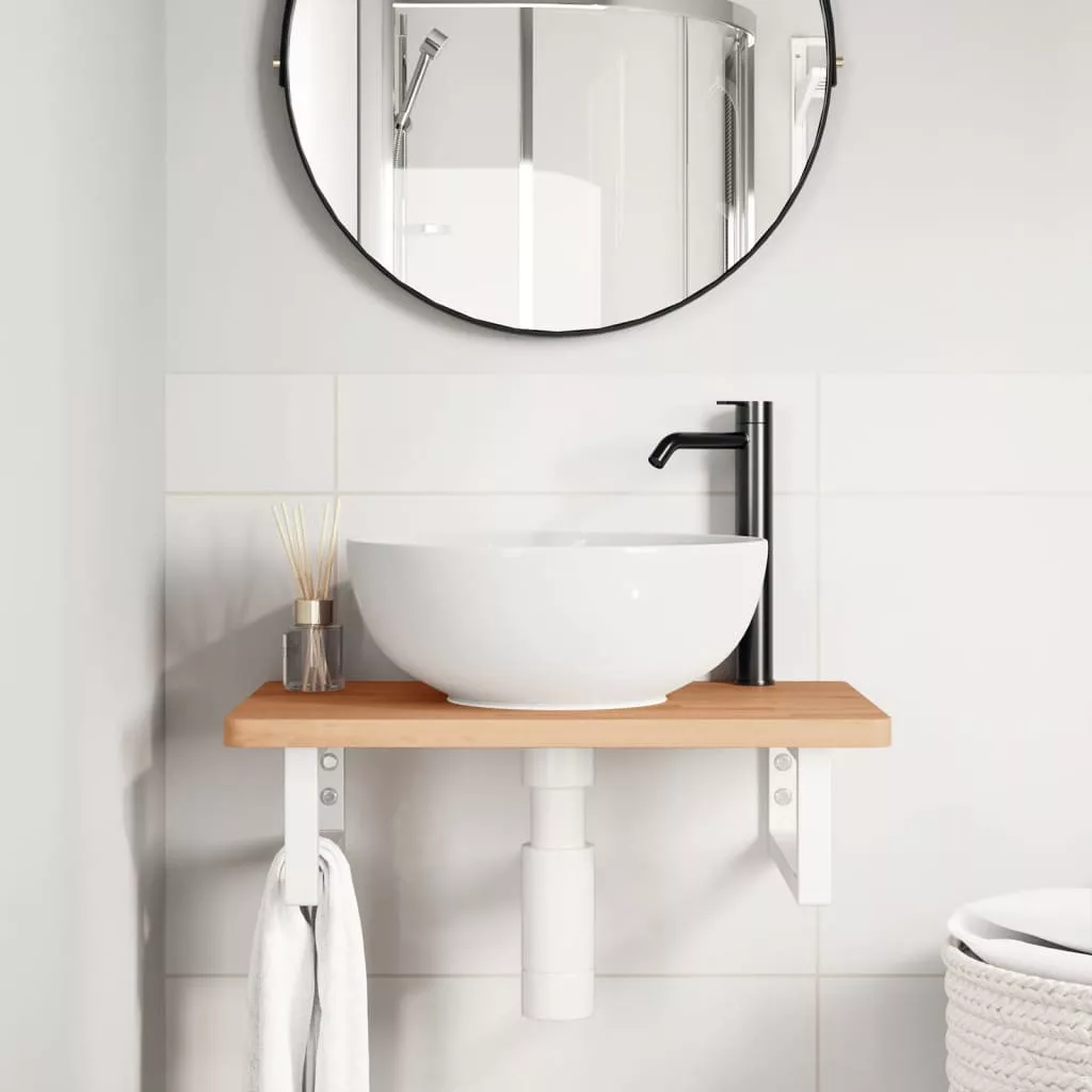 acél és tömör bükkfa falra szerelhető mosdópolc