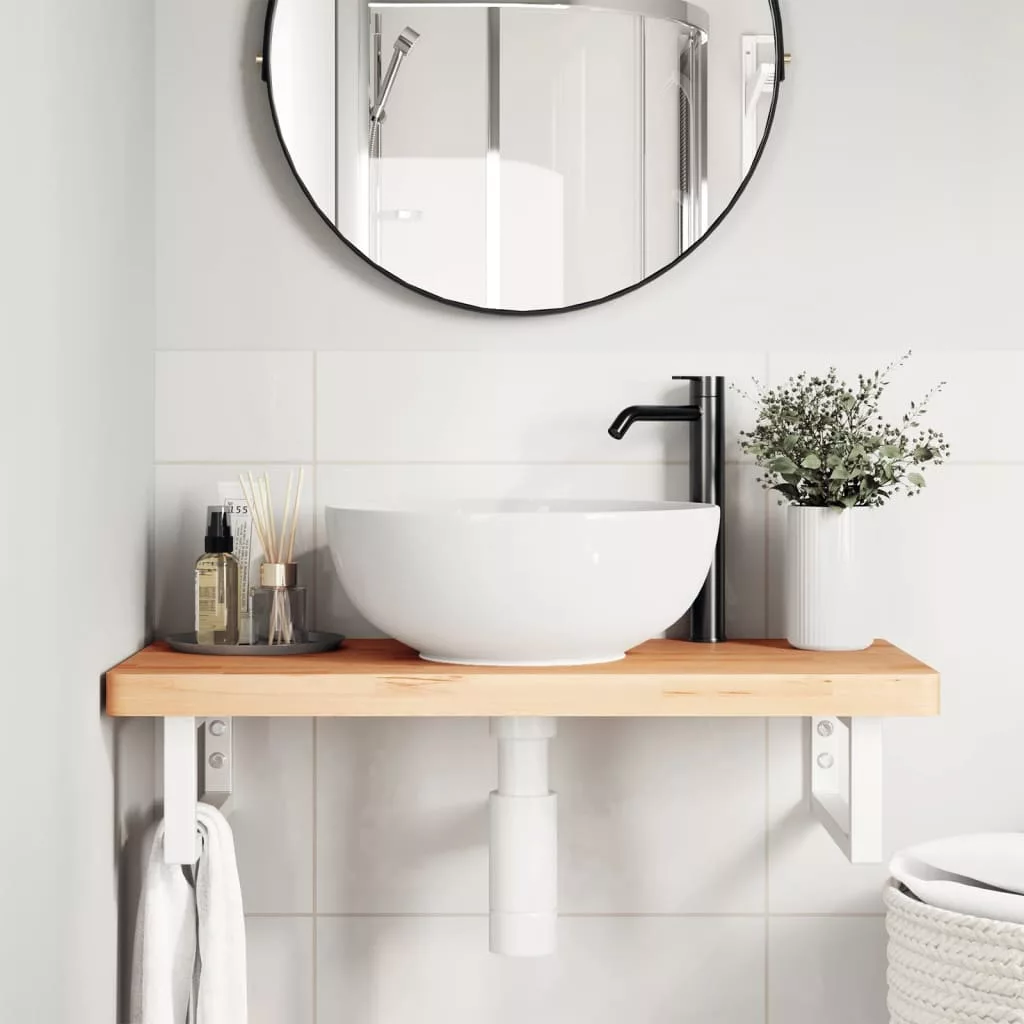 A falra szerelhető mosdópolc biztonságosan a falhoz rögzíthető, elegáns és helytakarékos megoldást nyújtva fürdőszobájának. Erős és tartós: Ez a mosdópolc acélszerkezettel és tömör bükkfa lappal lett ellátva, így erős, stabil és hosszú élettartamú. Helytakarékos: A lebegő mosdókagylópolcon bőséges hely van krémek és apróbb tárgyak tárolására. A téglalap alakú formának köszönhetően törölközőket vagy egyéb dolgokat akaszthat a tartóra, hogy helyet takarítson meg. Könnyen használható: A munkalap fúratlan, így a mosdó balra, jobbra vagy középre szerelhető, a helyiség igényeitől függően. A tartóba előre fúrt furatoknak köszönhetően könnyen összeszerelhető az asztallappal és a falra szerelhető. Széleskörű felhasználási terület: Modern kialakításának köszönhetően további helyet biztosít különféle típusú fürdőszobáknak. Jó tudni:A csavarokat nem tartalmazza, a csavarokat megvásárolhatja külön az alábbi információk alapján. Fali rögzítés: konzolonként 2 db M8 feszítőcsavar Fa lap: 2 db M5x18 csavar (T=2) vagy 2 db M5x20 csavar (T=2,5/4cm) konzolonként