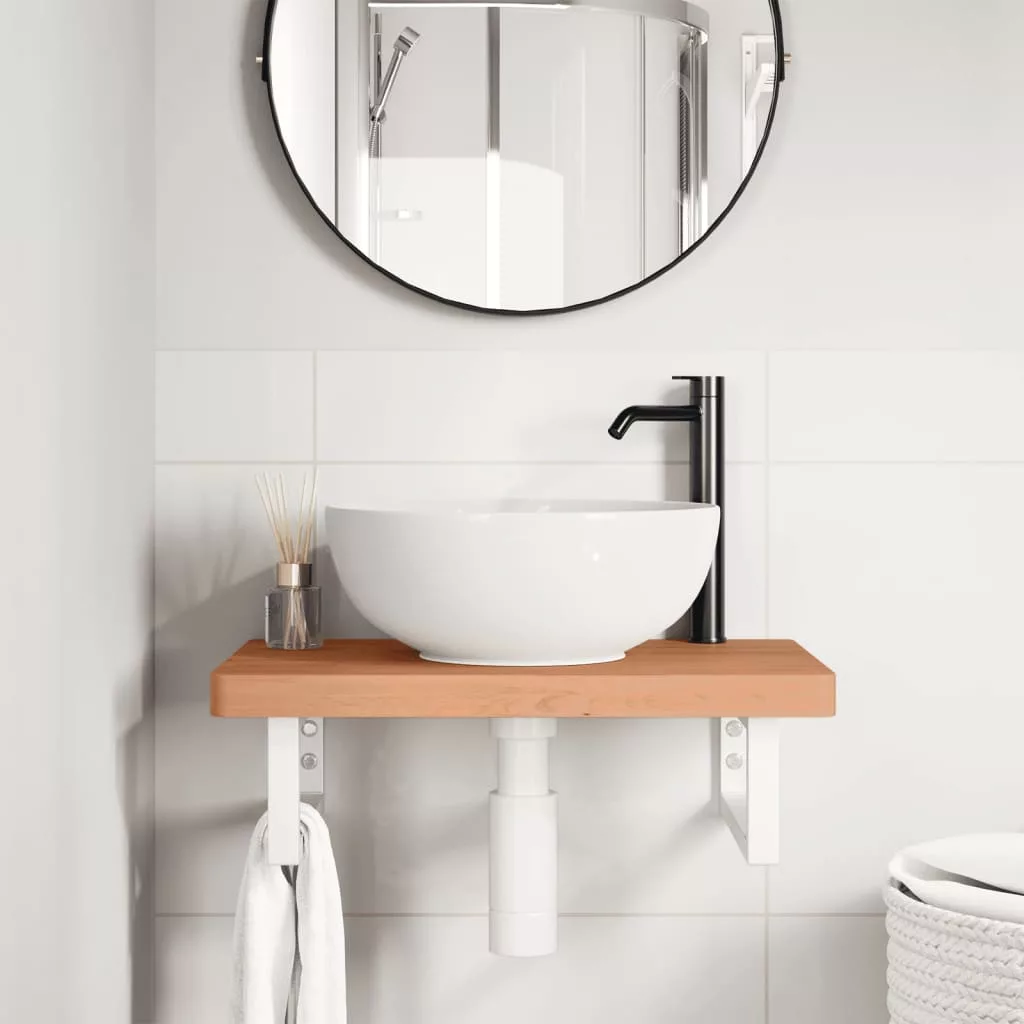 acél és tömör bükkfa falra szerelhető mosdópolc