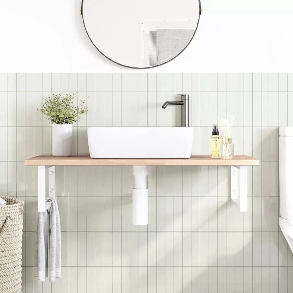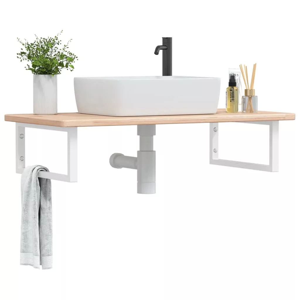A falra szerelhető mosdópolc biztonságosan a falhoz rögzíthető, elegáns és helytakarékos megoldást nyújtva fürdőszobájának. Erős és tartós: Ez a mosdópolc acélszerkezettel és tömör tölgyfa lappal lett ellátva, így erős, stabil és hosszú élettartamú. Helytakarékos: A lebegő mosdókagylópolcon bőséges hely van krémek és apróbb tárgyak tárolására. A téglalap alakú formának köszönhetően törölközőket vagy egyéb dolgokat akaszthat a tartóra, hogy helyet takarítson meg. Könnyen használható: A munkalap fúratlan, így a mosdó balra, jobbra vagy középre szerelhető, a helyiség igényeitől függően. A tartóba előre fúrt furatoknak köszönhetően könnyen összeszerelhető az asztallappal és a falra szerelhető. Széleskörű felhasználási terület: Modern kialakításának köszönhetően további helyet biztosít különféle típusú fürdőszobáknak. Jó tudni:A csavarokat nem tartalmazza, a csavarokat megvásárolhatja külön az alábbi információk alapján. Fali rögzítés: konzolonként 2 db M8 feszítőcsavar Fa lap: 2 db M5x18 csavar (T=2) vagy 2 db M5x20 csavar (T=2,5/4cm) konzolonként