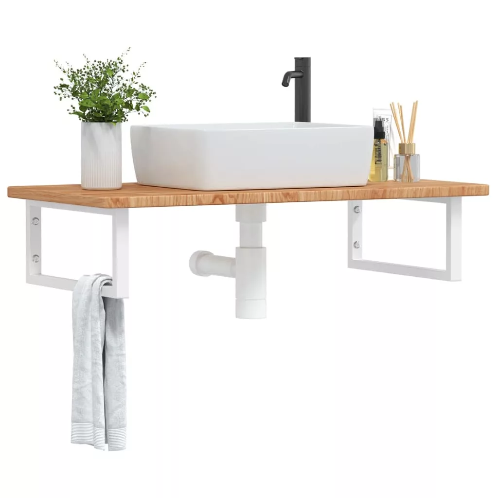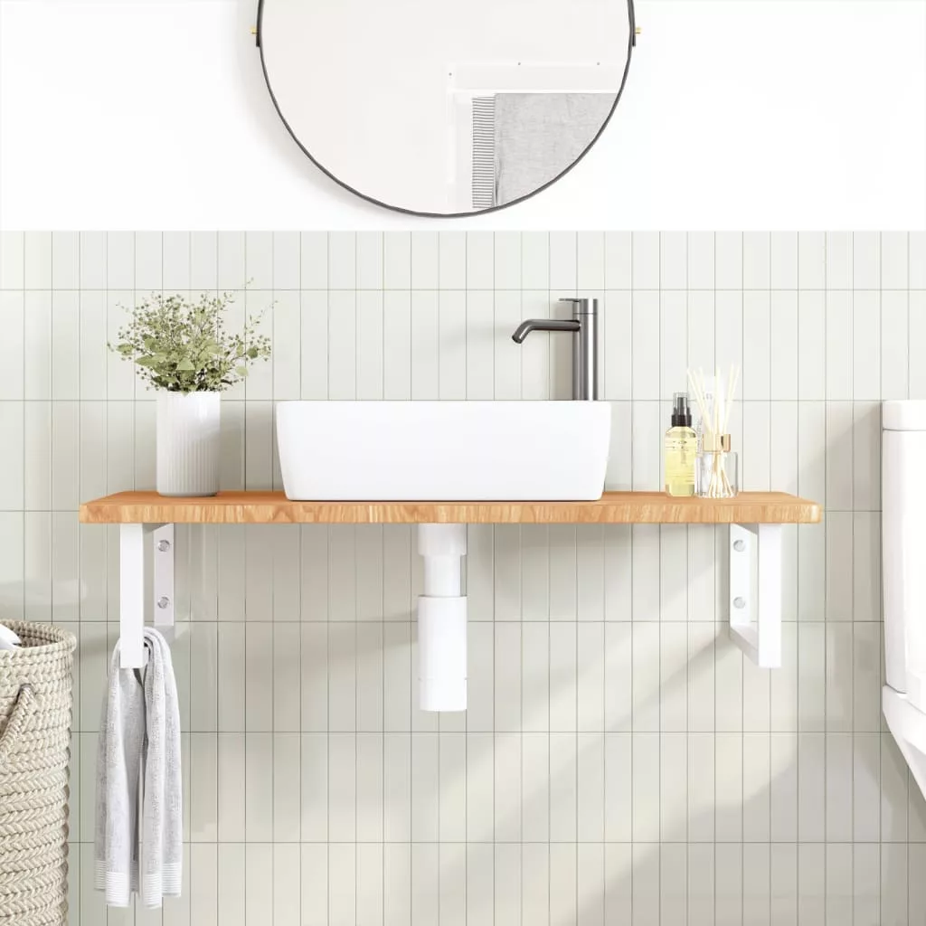 A falra szerelhető mosdópolc biztonságosan a falhoz rögzíthető, elegáns és helytakarékos megoldást nyújtva fürdőszobájának. Erős és tartós: Ez a mosdópolc acélszerkezettel és tömör tölgyfa lappal lett ellátva, így erős, stabil és hosszú élettartamú. Helytakarékos: A lebegő mosdókagylópolcon bőséges hely van krémek és apróbb tárgyak tárolására. A téglalap alakú formának köszönhetően törölközőket vagy egyéb dolgokat akaszthat a tartóra, hogy helyet takarítson meg. Könnyen használható: A munkalap fúratlan, így a mosdó balra, jobbra vagy középre szerelhető, a helyiség igényeitől függően. A tartóba előre fúrt furatoknak köszönhetően könnyen összeszerelhető az asztallappal és a falra szerelhető. Széleskörű felhasználási terület: Modern kialakításának köszönhetően további helyet biztosít különféle típusú fürdőszobáknak. Jó tudni:A csavarokat nem tartalmazza, a csavarokat megvásárolhatja külön az alábbi információk alapján. Fali rögzítés: konzolonként 2 db M8 feszítőcsavar Fa lap: 2 db M5x18 csavar (T=2) vagy 2 db M5x20 csavar (T=2,5/4cm) konzolonként