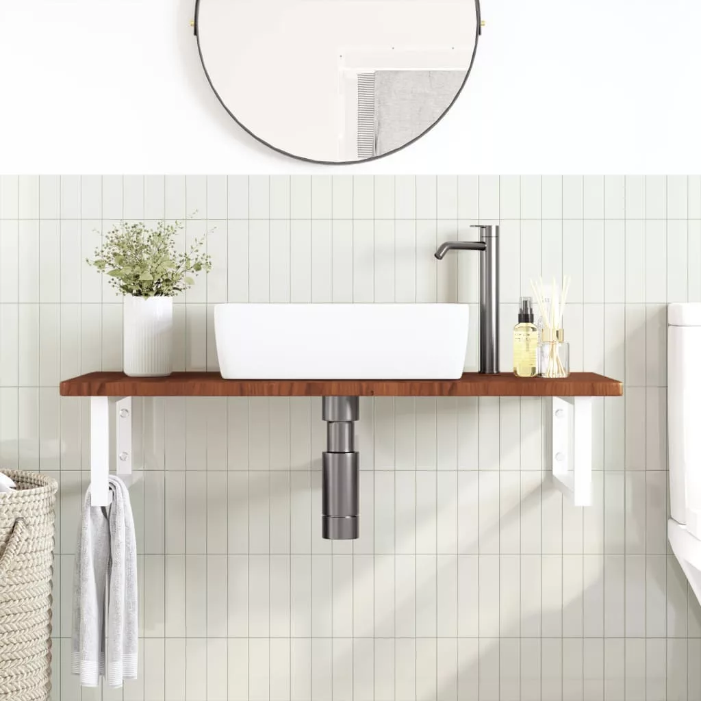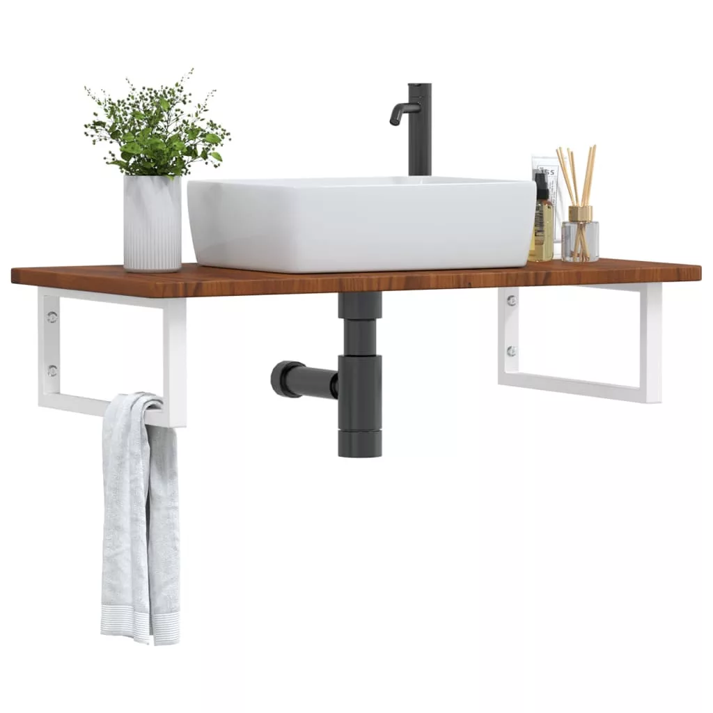 A falra szerelhető mosdópolc biztonságosan a falhoz rögzíthető, elegáns és helytakarékos megoldást nyújtva fürdőszobájának. Erős és tartós: Ez a mosdópolc acélszerkezettel és tömör tölgyfa lappal lett ellátva, így erős, stabil és hosszú élettartamú. Helytakarékos: A lebegő mosdókagylópolcon bőséges hely van krémek és apróbb tárgyak tárolására. A téglalap alakú formának köszönhetően törölközőket vagy egyéb dolgokat akaszthat a tartóra, hogy helyet takarítson meg. Könnyen használható: A munkalap fúratlan, így a mosdó balra, jobbra vagy középre szerelhető, a helyiség igényeitől függően. A tartóba előre fúrt furatoknak köszönhetően könnyen összeszerelhető az asztallappal és a falra szerelhető. Széleskörű felhasználási terület: Modern kialakításának köszönhetően további helyet biztosít különféle típusú fürdőszobáknak. Jó tudni:A csavarokat nem tartalmazza, a csavarokat megvásárolhatja külön az alábbi információk alapján. Fali rögzítés: konzolonként 2 db M8 feszítőcsavar Fa lap: 2 db M5x18 csavar (T=2) vagy 2 db M5x20 csavar (T=2,5/4cm) konzolonként