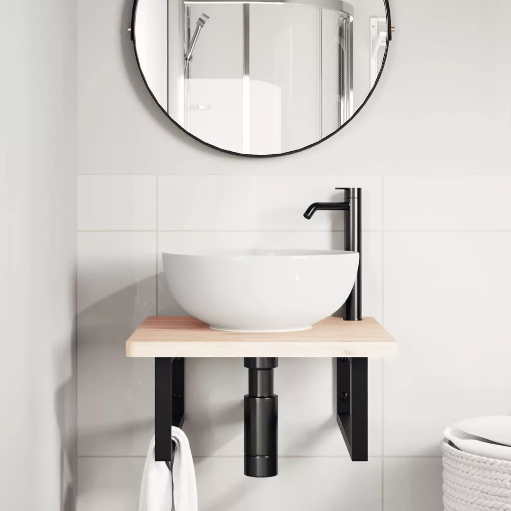 acél és tömör bükkfa falra szerelhető mosdópolc