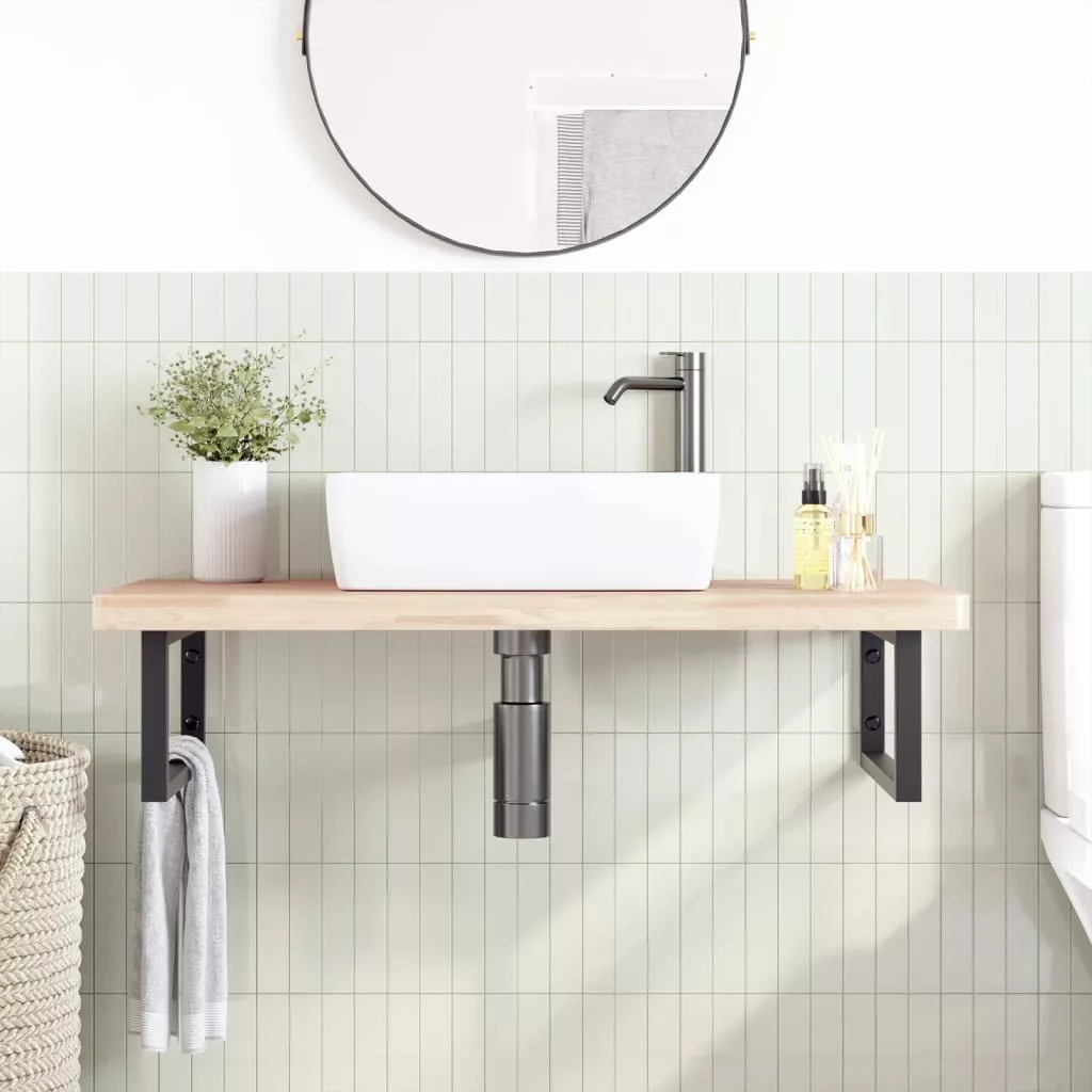 acél és tömör bükkfa falra szerelhető mosdópolc