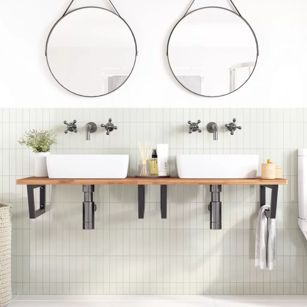 A falra szerelhető mosdópolc biztonságosan a falhoz rögzíthető, elegáns és helytakarékos megoldást nyújtva fürdőszobájának. Erős és tartós: Ez a mosdópolc acélszerkezettel és tömör bükkfa lappal lett ellátva, így erős, stabil és hosszú élettartamú. Helytakarékos: A függő mosdókagylópolc bőséges helyet kínál krémek és apróbb tárgyak tárolására. A trapéz alakú formának köszönhetően törölközőket vagy egyéb dolgokat akaszthat a tartóra, hogy helyet takarítson meg. Könnyen használható: A munkalap fúratlan, így a mosdó balra, jobbra vagy középre szerelhető, a helyiség igényeitől függően. A tartóba előre fúrt furatoknak köszönhetően könnyen összeszerelhető az asztallappal és a falra szerelhető. Széleskörű felhasználási terület: Modern kialakításának köszönhetően további helyet biztosít különféle típusú fürdőszobáknak. Jó tudni:A csavarokat nem tartalmazza, a csavarokat megvásárolhatja külön az alábbi információk alapján. Fali rögzítés: konzolonként 2 db M8 feszítőcsavar Fa lap: 2 db M5x18 csavar (T=2) vagy 2 db M5x20 csavar (T=2,5/4cm) konzolonként