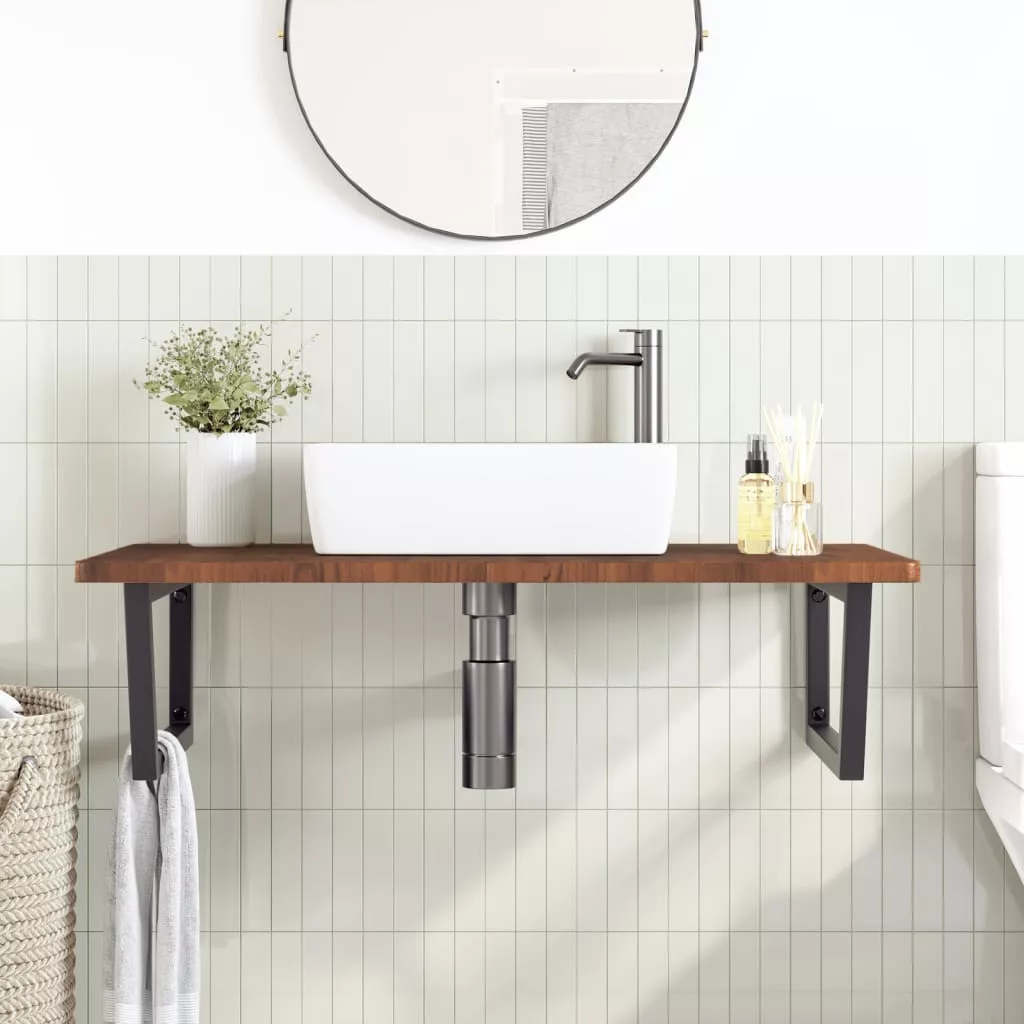 A falra szerelhető mosdópolc biztonságosan a falhoz rögzíthető, elegáns és helytakarékos megoldást nyújtva fürdőszobájának. Erős és tartós: Ez a mosdópolc acélszerkezettel és tömör tölgyfa lappal lett ellátva, így erős, stabil és hosszú élettartamú. Helytakarékos: A függő mosdókagylópolc bőséges helyet kínál krémek és apróbb tárgyak tárolására. A trapéz alakú formának köszönhetően törölközőket vagy egyéb dolgokat akaszthat a tartóra, hogy helyet takarítson meg. Könnyen használható: A munkalap fúratlan, így a mosdó balra, jobbra vagy középre szerelhető, a helyiség igényeitől függően. A tartóba előre fúrt furatoknak köszönhetően könnyen összeszerelhető az asztallappal és a falra szerelhető. Széleskörű felhasználási terület: Modern kialakításának köszönhetően további helyet biztosít különféle típusú fürdőszobáknak. Jó tudni:A csavarokat nem tartalmazza, a csavarokat megvásárolhatja külön az alábbi információk alapján. Fali rögzítés: konzolonként 2 db M8 feszítőcsavar Fa lap: 2 db M5x18 csavar (T=2) vagy 2 db M5x20 csavar (T=2,5/4cm) konzolonként