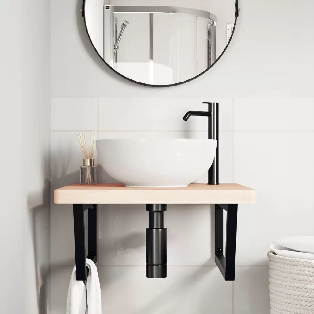 acél és tömör bükkfa falra szerelhető mosdópolc