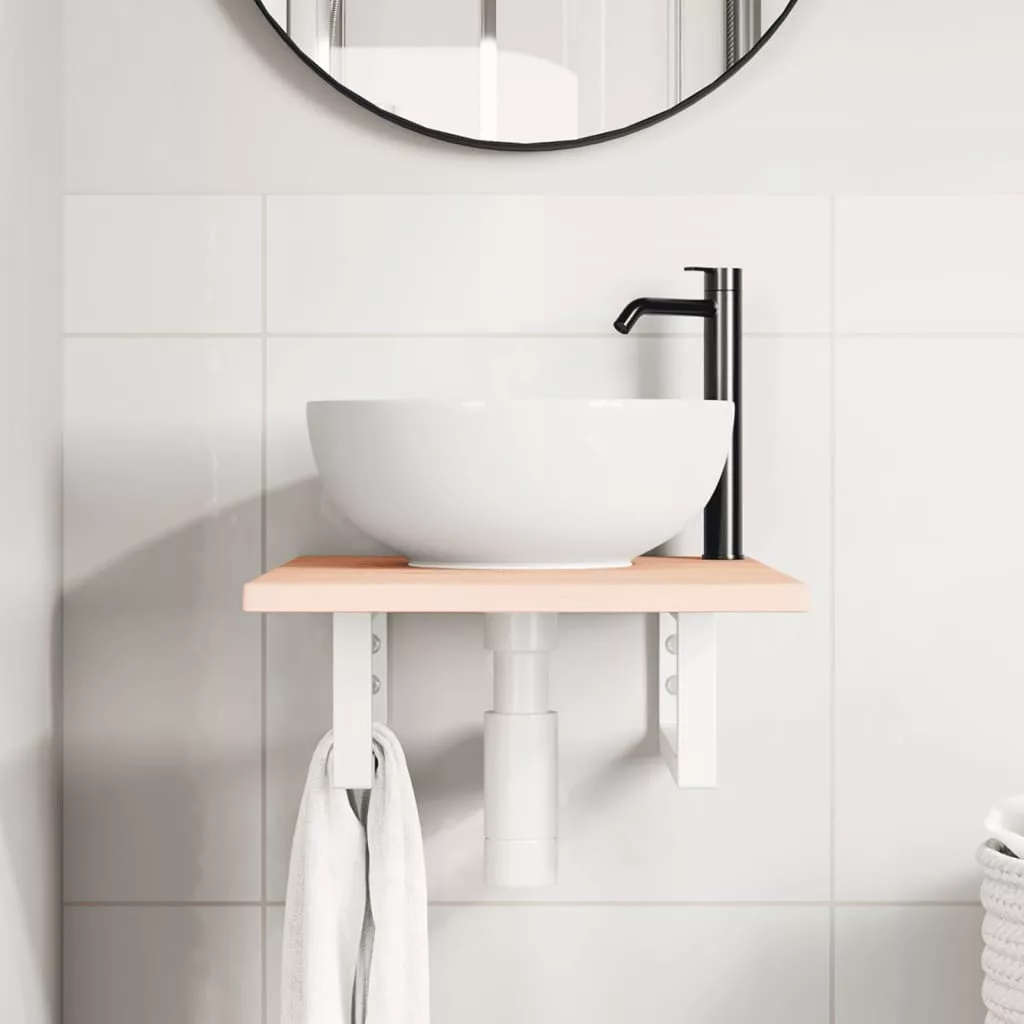 acél és tömör tölgyfa falra szerelhető mosdópolc