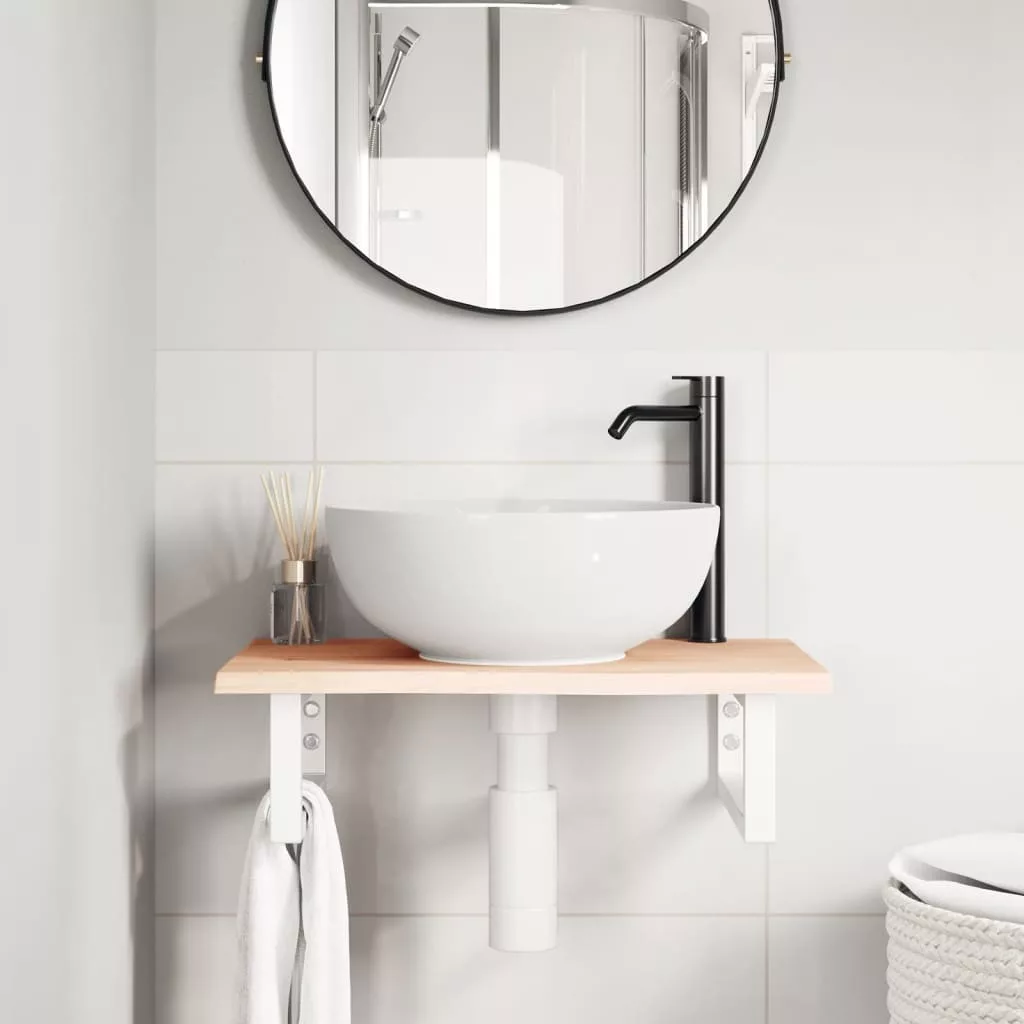 A falra szerelhető mosdópolc biztonságosan a falhoz rögzíthető, elegáns és helytakarékos megoldást nyújtva fürdőszobájának. Erős és tartós: Ez a mosdópolc acélszerkezettel és tömör tölgyfa lappal lett ellátva, így erős, stabil és hosszú élettartamú.Helytakarékos: A lebegő mosdókagylópolcon bőséges hely van krémek és apróbb tárgyak tárolására. A téglalap alakú formának köszönhetően törölközőket vagy egyéb dolgokat akaszthat a tartóra, hogy helyet takarítson meg.Könnyen használható: A munkalap fúratlan, így a mosdó balra, jobbra vagy középre szerelhető, a helyiség igényeitől függően. A tartóba előre fúrt furatoknak köszönhetően könnyen összeszerelhető az asztallappal és a falra szerelhető.Széleskörű felhasználási terület: Modern kialakításának köszönhetően további helyet biztosít különféle típusú fürdőszobáknak. Jó tudni:A csavarokat nem tartalmazza, a csavarokat megvásárolhatja külön az alábbi információk alapján.Fali rögzítés: konzolonként 2 db M8 feszítőcsavarFa lap: 2 db M5x18 csavar (T=2) vagy 2 db M5x20 csavar (T=2,5/4cm) konzolonkéntMivel ez egy természetes termék, a fán előfordulhatnak csomók és tökéletlenségek, amelyeket fekete töltettel töltünk ki a sima megjelenés érdekében.