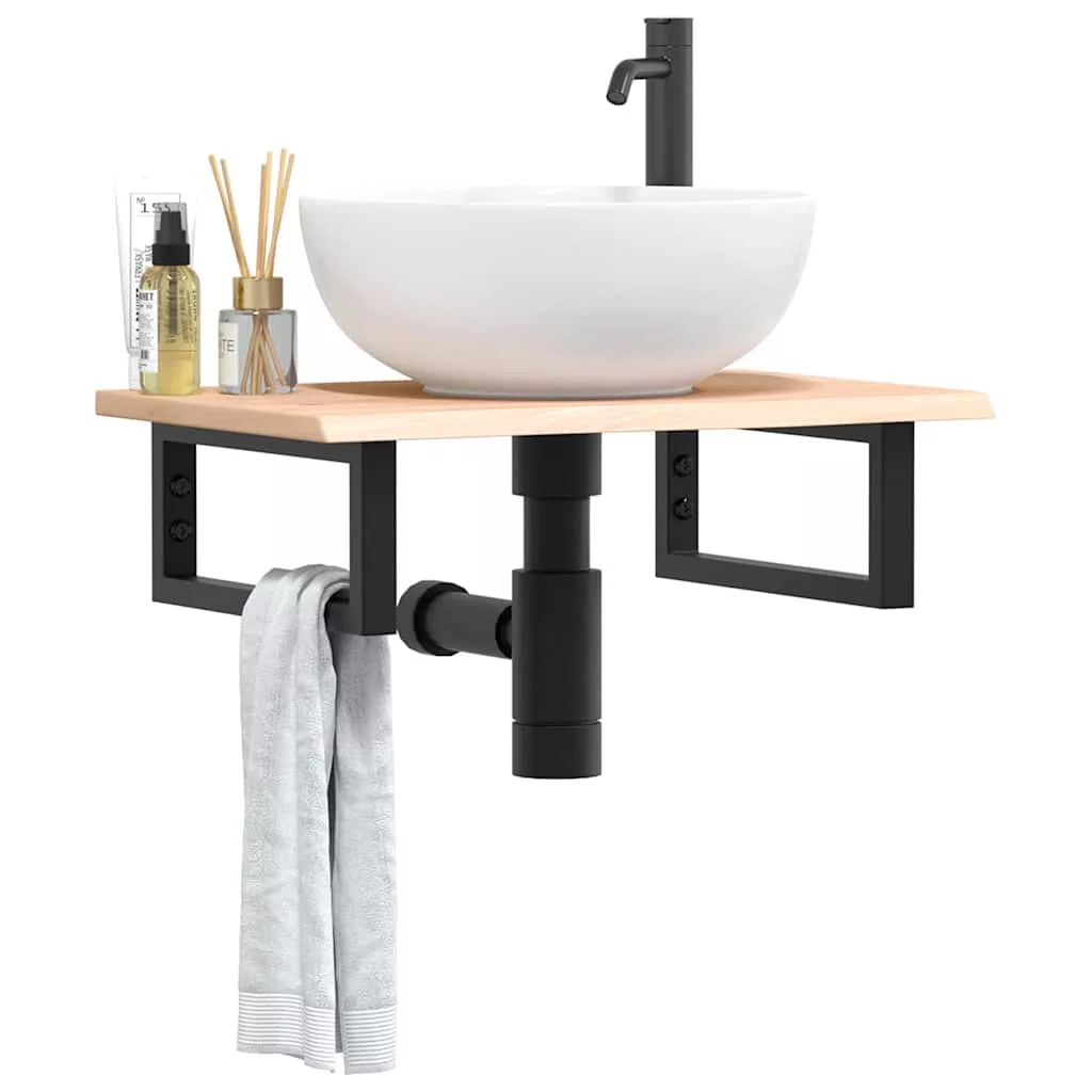acél és tömör tölgyfa falra szerelhető mosdópolc