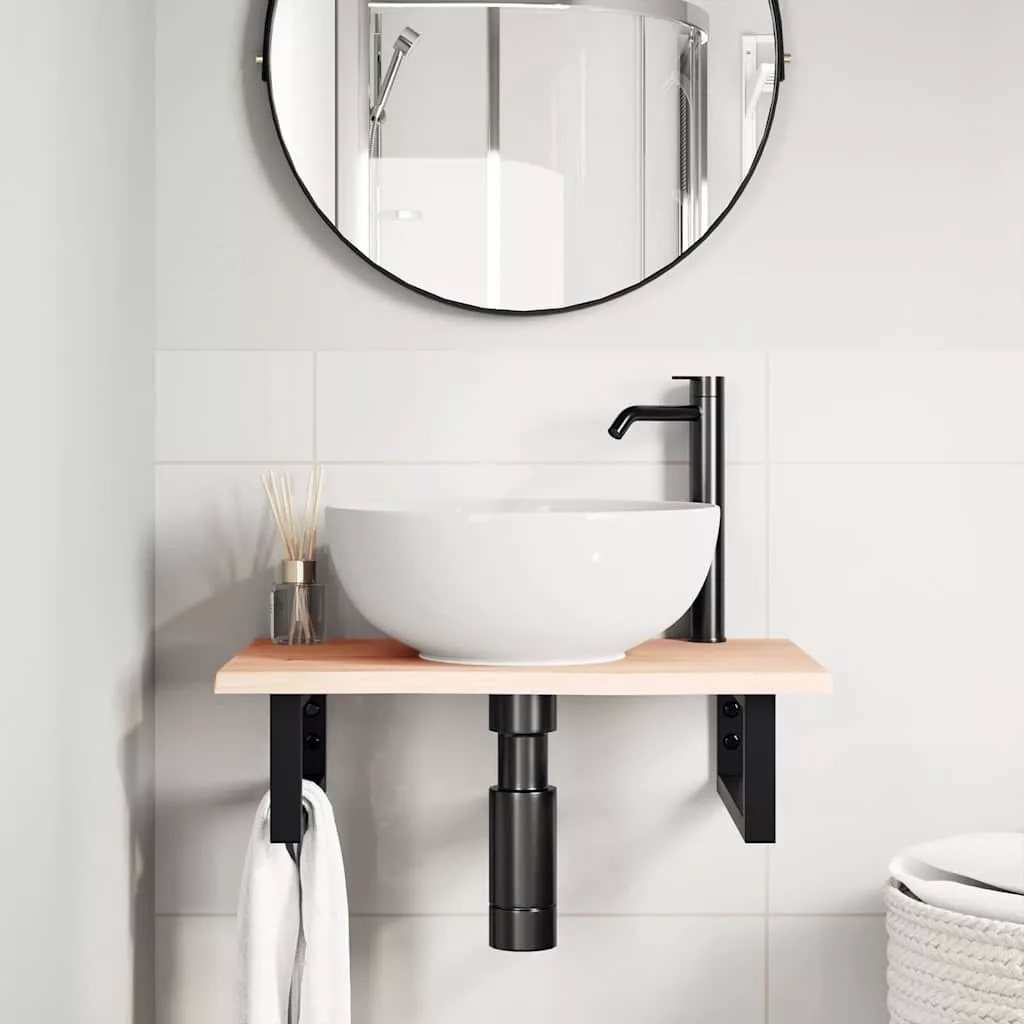 A falra szerelhető mosdópolc biztonságosan a falhoz rögzíthető, elegáns és helytakarékos megoldást nyújtva fürdőszobájának. Erős és tartós: Ez a mosdópolc acélszerkezettel és tömör tölgyfa lappal lett ellátva, így erős, stabil és hosszú élettartamú.Helytakarékos: A lebegő mosdókagylópolcon bőséges hely van krémek és apróbb tárgyak tárolására. A téglalap alakú formának köszönhetően törölközőket vagy egyéb dolgokat akaszthat a tartóra, hogy helyet takarítson meg.Könnyen használható: A munkalap fúratlan, így a mosdó balra, jobbra vagy középre szerelhető, a helyiség igényeitől függően. A tartóba előre fúrt furatoknak köszönhetően könnyen összeszerelhető az asztallappal és a falra szerelhető.Széleskörű felhasználási terület: Modern kialakításának köszönhetően további helyet biztosít különféle típusú fürdőszobáknak. Jó tudni:A csavarokat nem tartalmazza, a csavarokat megvásárolhatja külön az alábbi információk alapján.Fali rögzítés: konzolonként 2 db M8 feszítőcsavarFa lap: 2 db M5x18 csavar (T=2) vagy 2 db M5x20 csavar (T=2,5/4cm) konzolonkéntMivel ez egy természetes termék, a fán előfordulhatnak csomók és tökéletlenségek, amelyeket fekete töltettel töltünk ki a sima megjelenés érdekében.