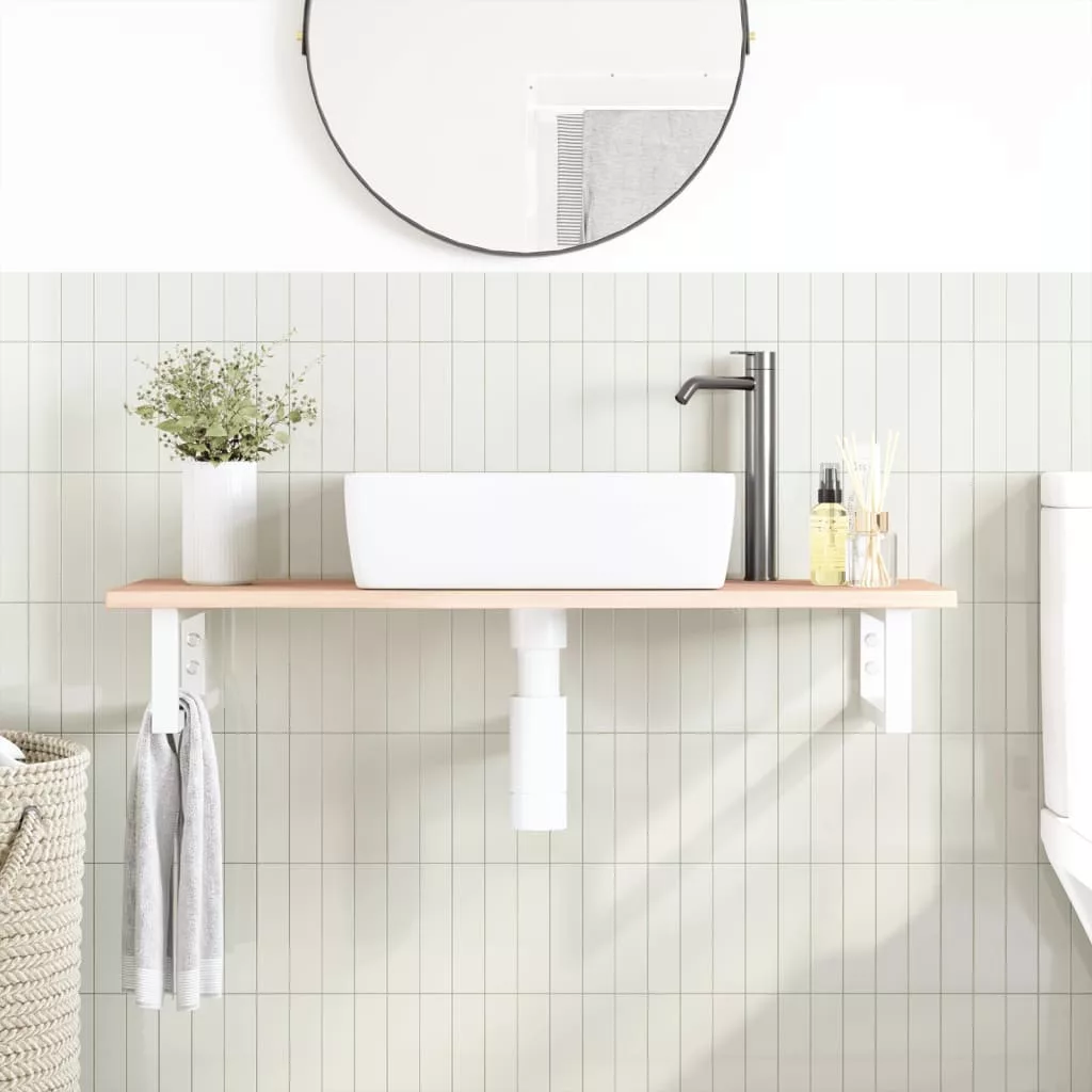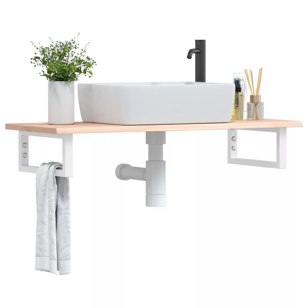 A falra szerelhető mosdópolc biztonságosan a falhoz rögzíthető, elegáns és helytakarékos megoldást nyújtva fürdőszobájának. Erős és tartós: Ez a mosdópolc acélszerkezettel és tömör tölgyfa lappal lett ellátva, így erős, stabil és hosszú élettartamú.Helytakarékos: A lebegő mosdókagylópolcon bőséges hely van krémek és apróbb tárgyak tárolására. A téglalap alakú formának köszönhetően törölközőket vagy egyéb dolgokat akaszthat a tartóra, hogy helyet takarítson meg.Könnyen használható: A munkalap fúratlan, így a mosdó balra, jobbra vagy középre szerelhető, a helyiség igényeitől függően. A tartóba előre fúrt furatoknak köszönhetően könnyen összeszerelhető az asztallappal és a falra szerelhető.Széleskörű felhasználási terület: Modern kialakításának köszönhetően további helyet biztosít különféle típusú fürdőszobáknak. Jó tudni:A csavarokat nem tartalmazza, a csavarokat megvásárolhatja külön az alábbi információk alapján.Fali rögzítés: konzolonként 2 db M8 feszítőcsavarFa lap: 2 db M5x18 csavar (T=2) vagy 2 db M5x20 csavar (T=2,5/4cm) konzolonkéntMivel ez egy természetes termék, a fán előfordulhatnak csomók és tökéletlenségek, amelyeket fekete töltettel töltünk ki a sima megjelenés érdekében.