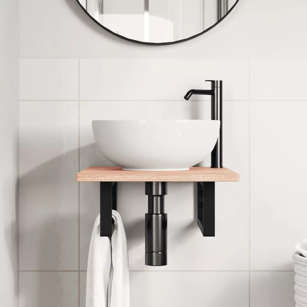 acél és tömör tölgyfa falra szerelhető mosdópolc