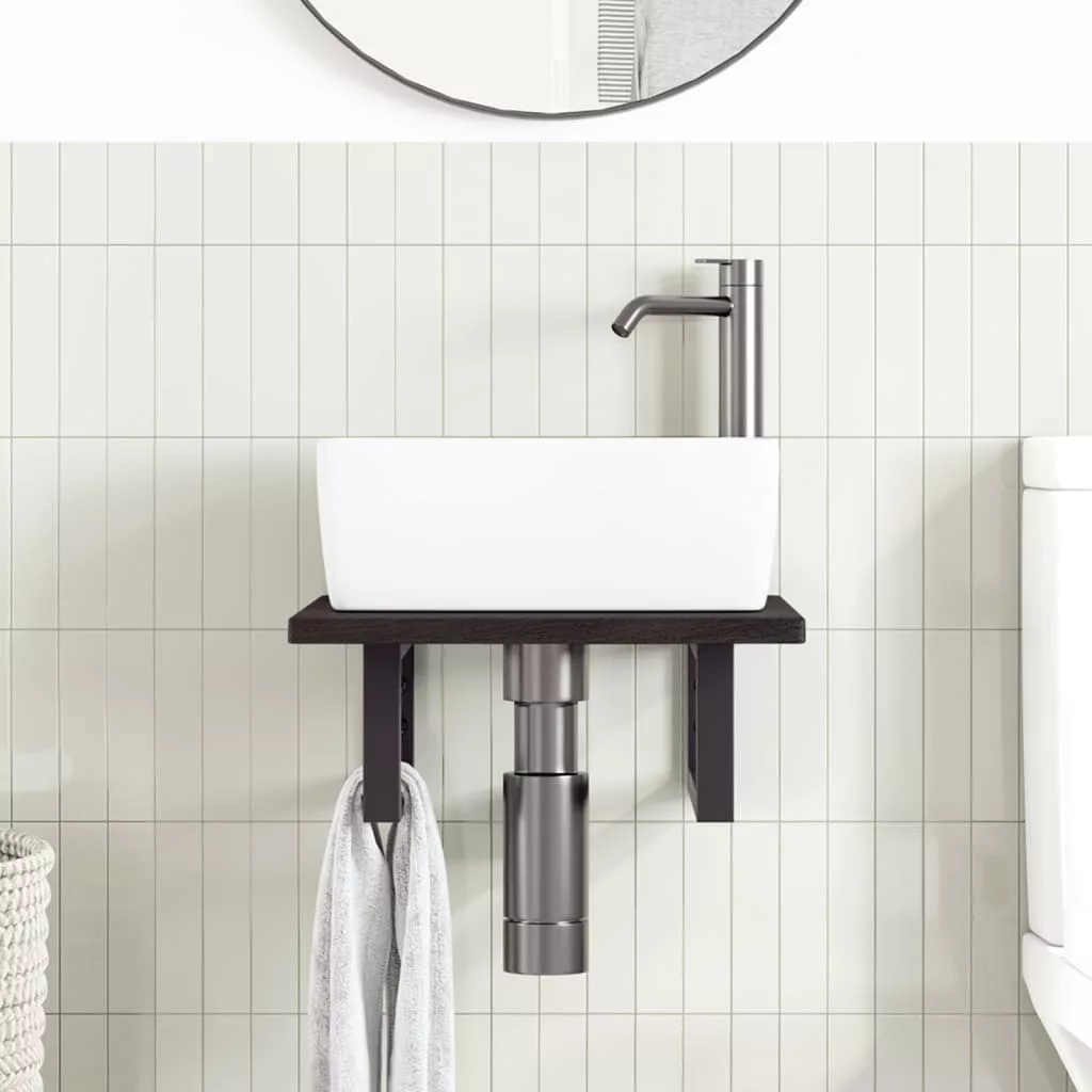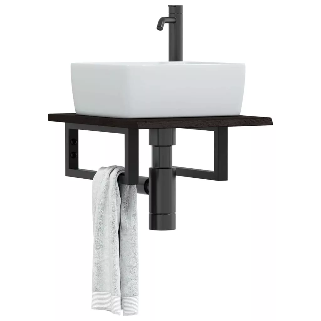 acél és tömör tölgyfa falra szerelhető mosdópolc