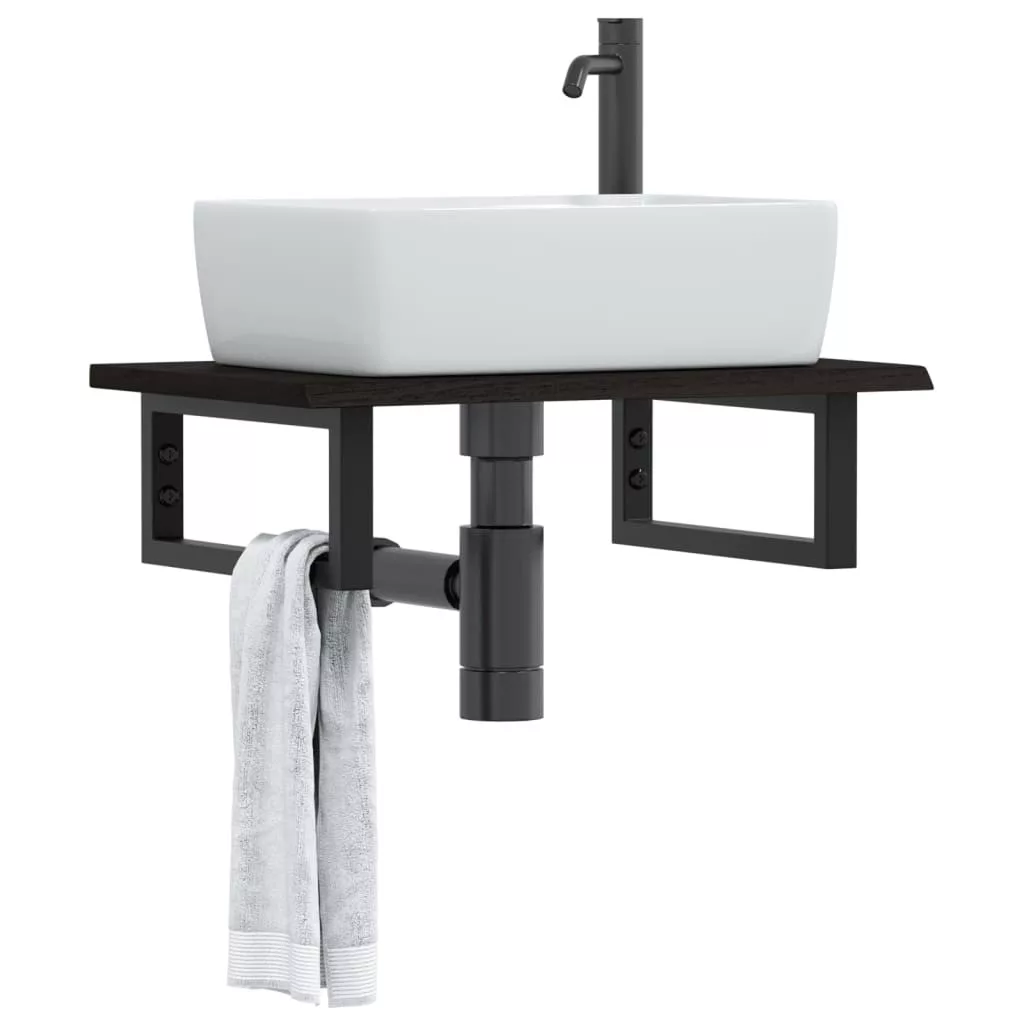 acél és tömör tölgyfa falra szerelhető mosdópolc