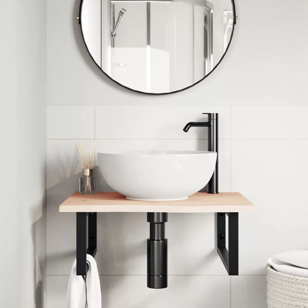 A falra szerelhető mosdópolc biztonságosan a falhoz rögzíthető, elegáns és helytakarékos megoldást nyújtva fürdőszobájának. Erős és tartós: Ez a mosdópolc acélszerkezettel és tömör tölgyfa lappal lett ellátva, így erős, stabil és hosszú élettartamú.Helytakarékos: A lebegő mosdókagylópolcon bőséges hely van krémek és apróbb tárgyak tárolására. A téglalap alakú formának köszönhetően törölközőket vagy egyéb dolgokat akaszthat a tartóra, hogy helyet takarítson meg.Könnyen használható: A munkalap fúratlan, így a mosdó balra, jobbra vagy középre szerelhető, a helyiség igényeitől függően. A tartóba előre fúrt furatoknak köszönhetően könnyen összeszerelhető az asztallappal és a falra szerelhető.Széleskörű felhasználási terület: Modern kialakításának köszönhetően további helyet biztosít különféle típusú fürdőszobáknak. Jó tudni:A csavarokat nem tartalmazza, a csavarokat megvásárolhatja külön az alábbi információk alapján.Fali rögzítés: konzolonként 2 db M8 feszítőcsavarFa lap: 2 db M5x18 csavar (T=2) vagy 2 db M5x20 csavar (T=2,5/4cm) konzolonkéntMivel ez egy természetes termék, a fán előfordulhatnak csomók és tökéletlenségek, amelyeket fekete töltettel töltünk ki a sima megjelenés érdekében.