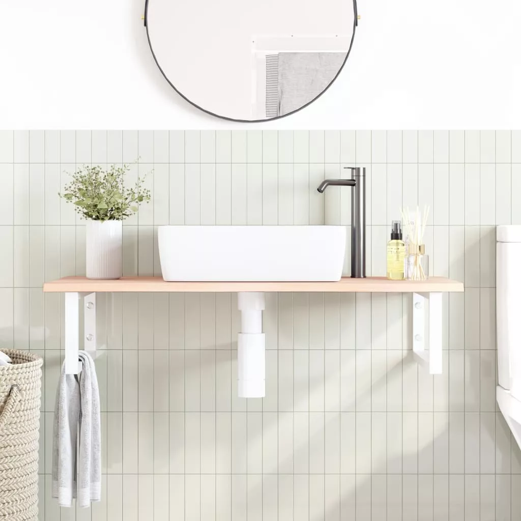 A falra szerelhető mosdópolc biztonságosan a falhoz rögzíthető, elegáns és helytakarékos megoldást nyújtva fürdőszobájának. Erős és tartós: Ez a mosdópolc acélszerkezettel és tömör tölgyfa lappal lett ellátva, így erős, stabil és hosszú élettartamú.Helytakarékos: A lebegő mosdókagylópolcon bőséges hely van krémek és apróbb tárgyak tárolására. A téglalap alakú formának köszönhetően törölközőket vagy egyéb dolgokat akaszthat a tartóra, hogy helyet takarítson meg.Könnyen használható: A munkalap fúratlan, így a mosdó balra, jobbra vagy középre szerelhető, a helyiség igényeitől függően. A tartóba előre fúrt furatoknak köszönhetően könnyen összeszerelhető az asztallappal és a falra szerelhető.Széleskörű felhasználási terület: Modern kialakításának köszönhetően további helyet biztosít különféle típusú fürdőszobáknak. Jó tudni:A csavarokat nem tartalmazza, a csavarokat megvásárolhatja külön az alábbi információk alapján.Fali rögzítés: konzolonként 2 db M8 feszítőcsavarFa lap: 2 db M5x18 csavar (T=2) vagy 2 db M5x20 csavar (T=2,5/4cm) konzolonkéntMivel ez egy természetes termék, a fán előfordulhatnak csomók és tökéletlenségek, amelyeket fekete töltettel töltünk ki a sima megjelenés érdekében.