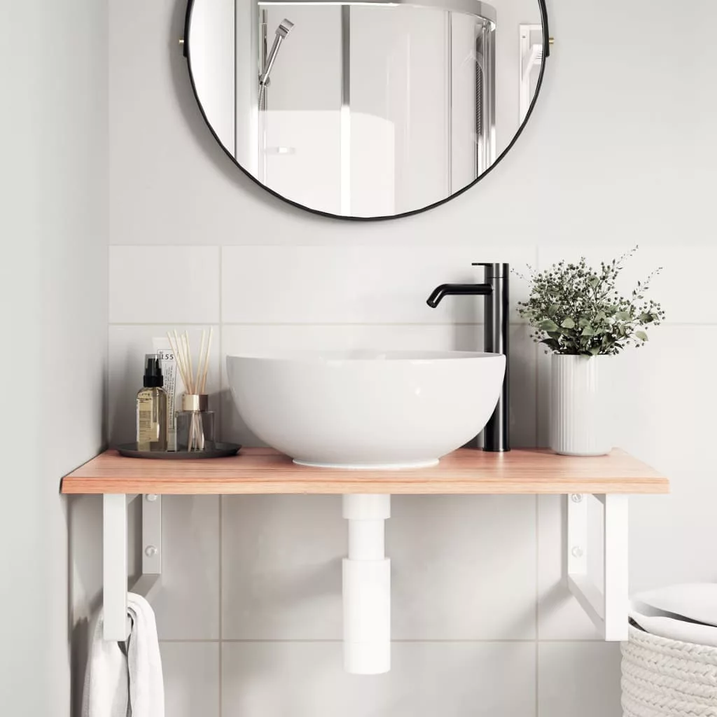 A falra szerelhető mosdópolc biztonságosan a falhoz rögzíthető, elegáns és helytakarékos megoldást nyújtva fürdőszobájának. Erős és tartós: Ez a mosdópolc acélszerkezettel és tömör tölgyfa lappal lett ellátva, így erős, stabil és hosszú élettartamú.Helytakarékos: A lebegő mosdókagylópolcon bőséges hely van krémek és apróbb tárgyak tárolására. A téglalap alakú formának köszönhetően törölközőket vagy egyéb dolgokat akaszthat a tartóra, hogy helyet takarítson meg.Könnyen használható: A munkalap fúratlan, így a mosdó balra, jobbra vagy középre szerelhető, a helyiség igényeitől függően. A tartóba előre fúrt furatoknak köszönhetően könnyen összeszerelhető az asztallappal és a falra szerelhető.Széleskörű felhasználási terület: Modern kialakításának köszönhetően további helyet biztosít különféle típusú fürdőszobáknak. Jó tudni:A csavarokat nem tartalmazza, a csavarokat megvásárolhatja külön az alábbi információk alapján.Fali rögzítés: konzolonként 2 db M8 feszítőcsavarFa lap: 2 db M5x18 csavar (T=2) vagy 2 db M5x20 csavar (T=2,5/4cm) konzolonkéntMivel ez egy természetes termék, a fán előfordulhatnak csomók és tökéletlenségek, amelyeket fekete töltettel töltünk ki a sima megjelenés érdekében.