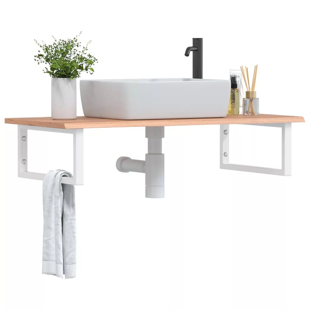 A falra szerelhető mosdópolc biztonságosan a falhoz rögzíthető, elegáns és helytakarékos megoldást nyújtva fürdőszobájának. Erős és tartós: Ez a mosdópolc acélszerkezettel és tömör tölgyfa lappal lett ellátva, így erős, stabil és hosszú élettartamú.Helytakarékos: A lebegő mosdókagylópolcon bőséges hely van krémek és apróbb tárgyak tárolására. A téglalap alakú formának köszönhetően törölközőket vagy egyéb dolgokat akaszthat a tartóra, hogy helyet takarítson meg.Könnyen használható: A munkalap fúratlan, így a mosdó balra, jobbra vagy középre szerelhető, a helyiség igényeitől függően. A tartóba előre fúrt furatoknak köszönhetően könnyen összeszerelhető az asztallappal és a falra szerelhető.Széleskörű felhasználási terület: Modern kialakításának köszönhetően további helyet biztosít különféle típusú fürdőszobáknak. Jó tudni:A csavarokat nem tartalmazza, a csavarokat megvásárolhatja külön az alábbi információk alapján.Fali rögzítés: konzolonként 2 db M8 feszítőcsavarFa lap: 2 db M5x18 csavar (T=2) vagy 2 db M5x20 csavar (T=2,5/4cm) konzolonkéntMivel ez egy természetes termék, a fán előfordulhatnak csomók és tökéletlenségek, amelyeket fekete töltettel töltünk ki a sima megjelenés érdekében.