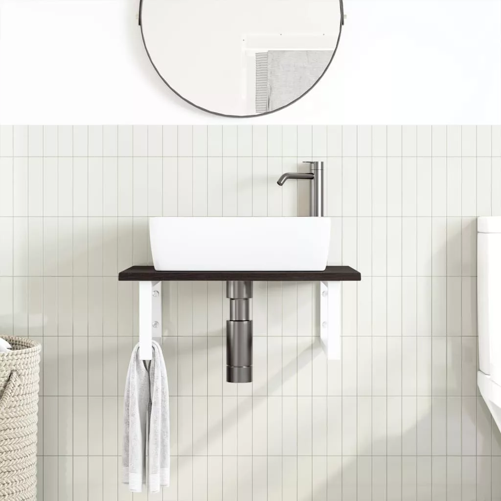 A falra szerelhető mosdópolc biztonságosan a falhoz rögzíthető, elegáns és helytakarékos megoldást nyújtva fürdőszobájának. Erős és tartós: Ez a mosdópolc acélszerkezettel és tömör tölgyfa lappal lett ellátva, így erős, stabil és hosszú élettartamú.Helytakarékos: A lebegő mosdókagylópolcon bőséges hely van krémek és apróbb tárgyak tárolására. A téglalap alakú formának köszönhetően törölközőket vagy egyéb dolgokat akaszthat a tartóra, hogy helyet takarítson meg.Könnyen használható: A munkalap fúratlan, így a mosdó balra, jobbra vagy középre szerelhető, a helyiség igényeitől függően. A tartóba előre fúrt furatoknak köszönhetően könnyen összeszerelhető az asztallappal és a falra szerelhető.Széleskörű felhasználási terület: Modern kialakításának köszönhetően további helyet biztosít különféle típusú fürdőszobáknak. Jó tudni:A csavarokat nem tartalmazza, a csavarokat megvásárolhatja külön az alábbi információk alapján.Fali rögzítés: konzolonként 2 db M8 feszítőcsavarFa lap: 2 db M5x18 csavar (T=2) vagy 2 db M5x20 csavar (T=2,5/4cm) konzolonkéntMivel ez egy természetes termék, a fán előfordulhatnak csomók és tökéletlenségek, amelyeket fekete töltettel töltünk ki a sima megjelenés érdekében.