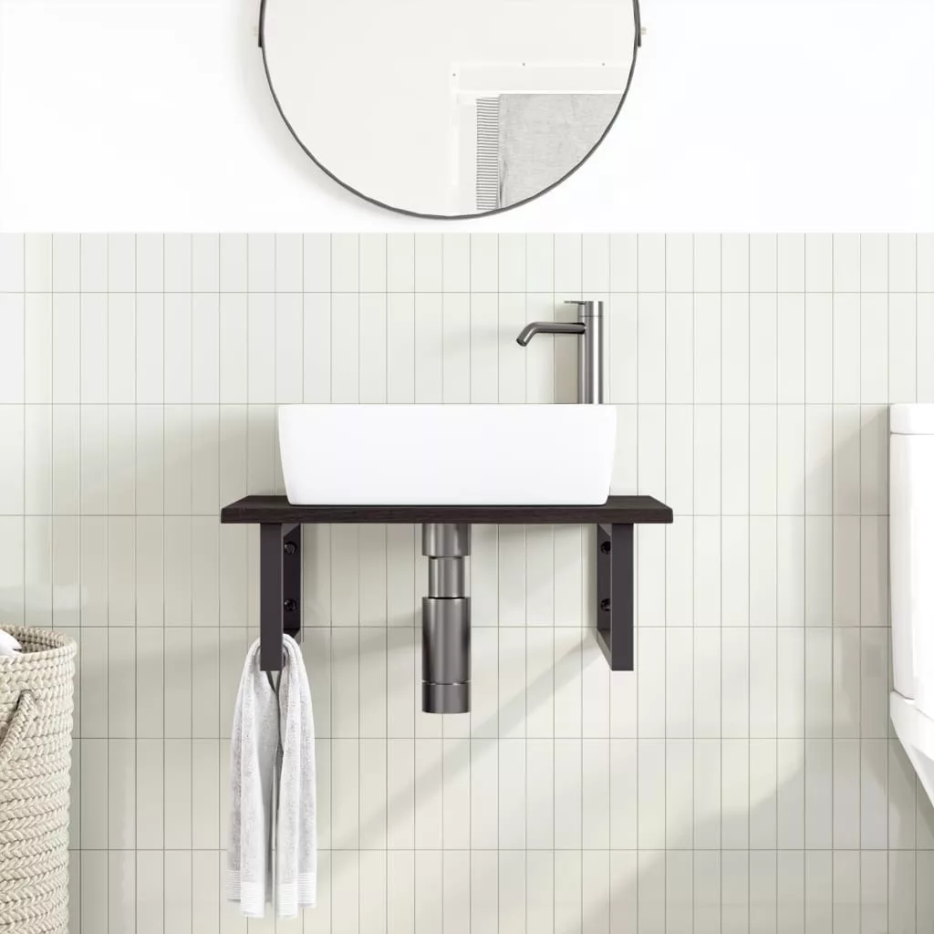 A falra szerelhető mosdópolc biztonságosan a falhoz rögzíthető, elegáns és helytakarékos megoldást nyújtva fürdőszobájának. Erős és tartós: Ez a mosdópolc acélszerkezettel és tömör tölgyfa lappal lett ellátva, így erős, stabil és hosszú élettartamú.Helytakarékos: A lebegő mosdókagylópolcon bőséges hely van krémek és apróbb tárgyak tárolására. A téglalap alakú formának köszönhetően törölközőket vagy egyéb dolgokat akaszthat a tartóra, hogy helyet takarítson meg.Könnyen használható: A munkalap fúratlan, így a mosdó balra, jobbra vagy középre szerelhető, a helyiség igényeitől függően. A tartóba előre fúrt furatoknak köszönhetően könnyen összeszerelhető az asztallappal és a falra szerelhető.Széleskörű felhasználási terület: Modern kialakításának köszönhetően további helyet biztosít különféle típusú fürdőszobáknak. Jó tudni:A csavarokat nem tartalmazza, a csavarokat megvásárolhatja külön az alábbi információk alapján.Fali rögzítés: konzolonként 2 db M8 feszítőcsavarFa lap: 2 db M5x18 csavar (T=2) vagy 2 db M5x20 csavar (T=2,5/4cm) konzolonkéntMivel ez egy természetes termék, a fán előfordulhatnak csomók és tökéletlenségek, amelyeket fekete töltettel töltünk ki a sima megjelenés érdekében.