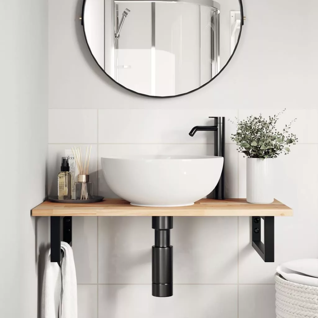 A falra szerelhető mosdópolc biztonságosan a falhoz rögzíthető, elegáns és helytakarékos megoldást nyújtva fürdőszobájának. Erős és tartós: Ez a mosdópolc acélszerkezettel és tömör akácfa lappal lett ellátva, így erős, stabil és hosszú élettartamú.Helytakarékos: A lebegő mosdókagylópolcon bőséges hely van krémek és apróbb tárgyak tárolására. A téglalap alakú formának köszönhetően törölközőket vagy egyéb dolgokat akaszthat a tartóra, hogy helyet takarítson meg.Könnyen használható: A munkalap fúratlan, így a mosdó balra, jobbra vagy középre szerelhető, a helyiség igényeitől függően. A tartóba előre fúrt furatoknak köszönhetően könnyen összeszerelhető az asztallappal és a falra szerelhető.Széleskörű felhasználási terület: Modern kialakításának köszönhetően további helyet biztosít különféle típusú fürdőszobáknak. Jó tudni:A csavarokat nem tartalmazza, a csavarokat megvásárolhatja külön az alábbi információk alapján.Fali rögzítés: konzolonként 2 db M8 feszítőcsavarFa lap: 2 db M5x18 csavar (T=2) vagy 2 db M5x20 csavar (T=2,5/4cm) konzolonként