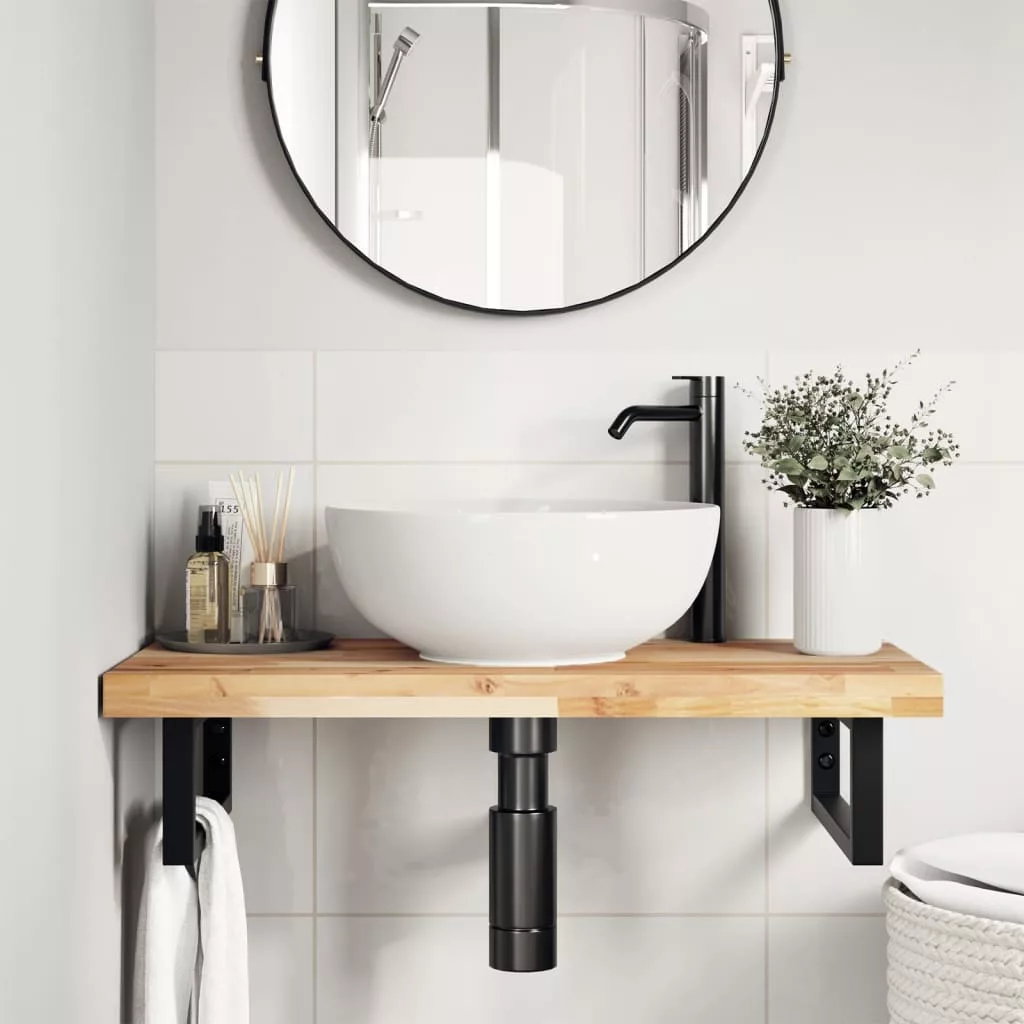 A falra szerelhető mosdópolc biztonságosan a falhoz rögzíthető, elegáns és helytakarékos megoldást nyújtva fürdőszobájának. Erős és tartós: Ez a mosdópolc acélszerkezettel és tömör akácfa lappal lett ellátva, így erős, stabil és hosszú élettartamú.Helytakarékos: A lebegő mosdókagylópolcon bőséges hely van krémek és apróbb tárgyak tárolására. A téglalap alakú formának köszönhetően törölközőket vagy egyéb dolgokat akaszthat a tartóra, hogy helyet takarítson meg.Könnyen használható: A munkalap fúratlan, így a mosdó balra, jobbra vagy középre szerelhető, a helyiség igényeitől függően. A tartóba előre fúrt furatoknak köszönhetően könnyen összeszerelhető az asztallappal és a falra szerelhető.Széleskörű felhasználási terület: Modern kialakításának köszönhetően további helyet biztosít különféle típusú fürdőszobáknak. Jó tudni:A csavarokat nem tartalmazza, a csavarokat megvásárolhatja külön az alábbi információk alapján.Fali rögzítés: konzolonként 2 db M8 feszítőcsavarFa lap: 2 db M5x18 csavar (T=2) vagy 2 db M5x20 csavar (T=2,5/4cm) konzolonként