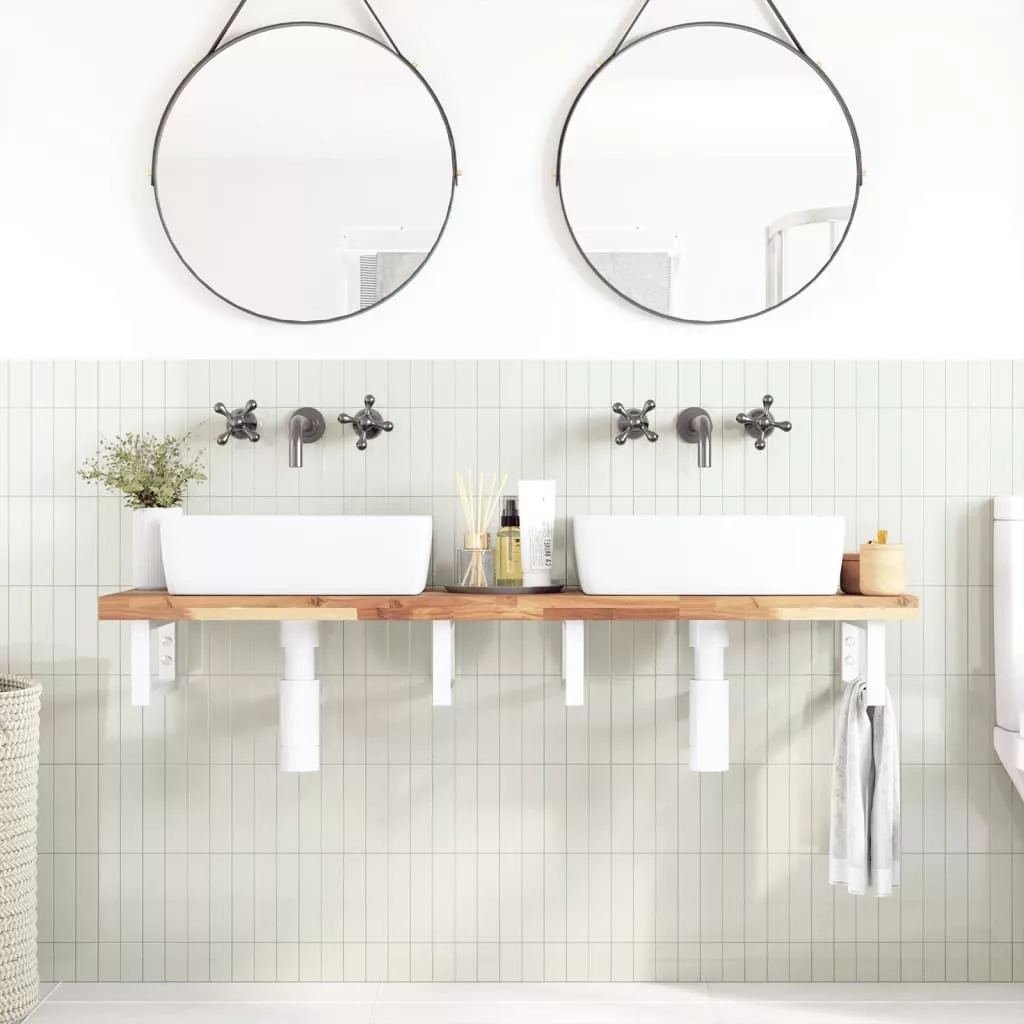 A falra szerelhető mosdópolc biztonságosan a falhoz rögzíthető, elegáns és helytakarékos megoldást nyújtva fürdőszobájának. Erős és tartós: Ez a mosdópolc acélszerkezettel és tömör akácfa lappal lett ellátva, így erős, stabil és hosszú élettartamú.Helytakarékos: A lebegő mosdókagylópolcon bőséges hely van krémek és apróbb tárgyak tárolására. A téglalap alakú formának köszönhetően törölközőket vagy egyéb dolgokat akaszthat a tartóra, hogy helyet takarítson meg.Könnyen használható: A munkalap fúratlan, így a mosdó balra, jobbra vagy középre szerelhető, a helyiség igényeitől függően. A tartóba előre fúrt furatoknak köszönhetően könnyen összeszerelhető az asztallappal és a falra szerelhető.Széleskörű felhasználási terület: Modern kialakításának köszönhetően további helyet biztosít különféle típusú fürdőszobáknak. Jó tudni:A csavarokat nem tartalmazza, a csavarokat megvásárolhatja külön az alábbi információk alapján.Fali rögzítés: konzolonként 2 db M8 feszítőcsavarFa lap: 2 db M5x18 csavar (T=2) vagy 2 db M5x20 csavar (T=2,5/4cm) konzolonként