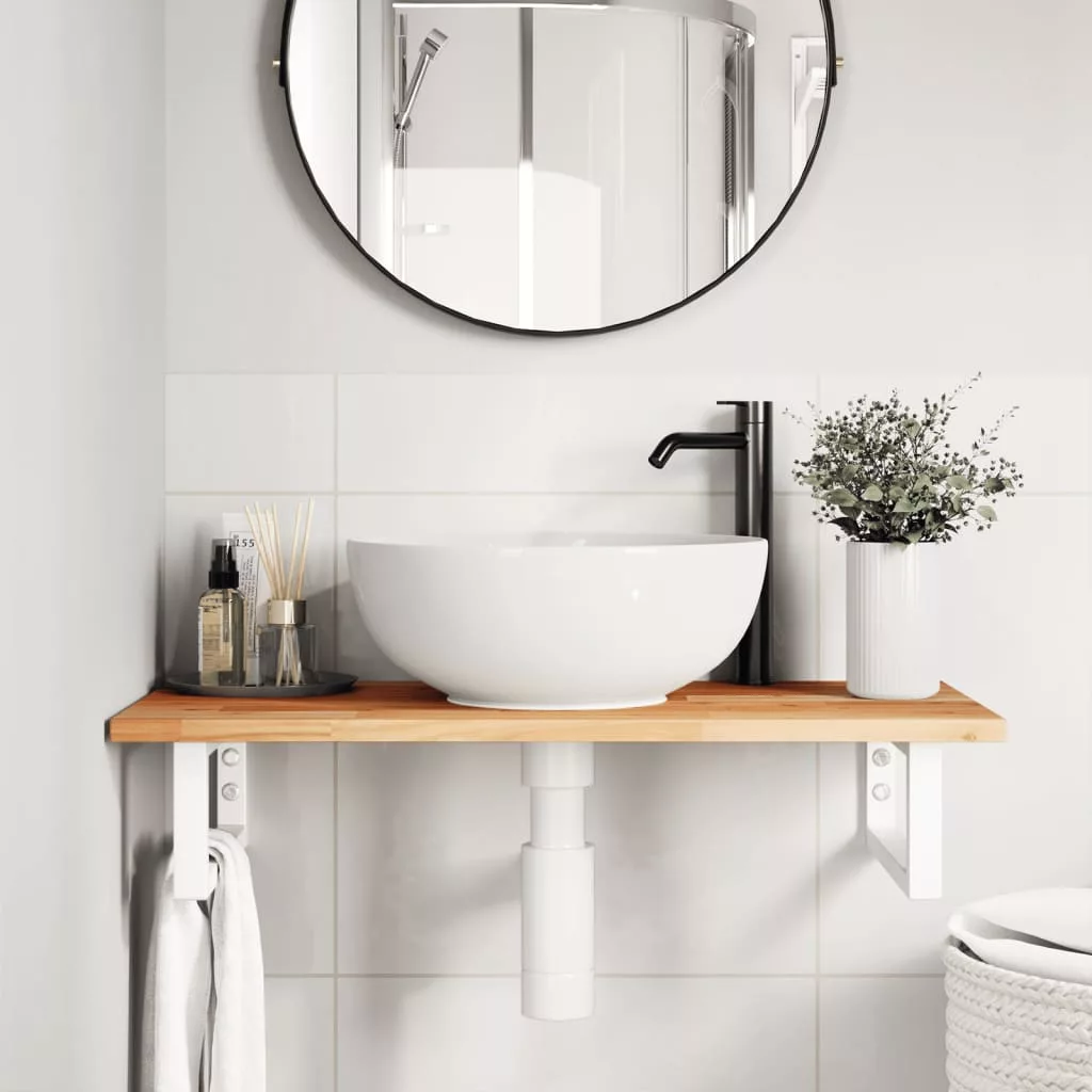 A falra szerelhető mosdópolc biztonságosan a falhoz rögzíthető, elegáns és helytakarékos megoldást nyújtva fürdőszobájának. Erős és tartós: Ez a mosdópolc acélszerkezettel és tömör akácfa lappal lett ellátva, így erős, stabil és hosszú élettartamú.Helytakarékos: A lebegő mosdókagylópolcon bőséges hely van krémek és apróbb tárgyak tárolására. A téglalap alakú formának köszönhetően törölközőket vagy egyéb dolgokat akaszthat a tartóra, hogy helyet takarítson meg.Könnyen használható: A munkalap fúratlan, így a mosdó balra, jobbra vagy középre szerelhető, a helyiség igényeitől függően. A tartóba előre fúrt furatoknak köszönhetően könnyen összeszerelhető az asztallappal és a falra szerelhető.Széleskörű felhasználási terület: Modern kialakításának köszönhetően további helyet biztosít különféle típusú fürdőszobáknak. Jó tudni:A csavarokat nem tartalmazza, a csavarokat megvásárolhatja külön az alábbi információk alapján.Fali rögzítés: konzolonként 2 db M8 feszítőcsavarFa lap: 2 db M5x18 csavar (T=2) vagy 2 db M5x20 csavar (T=2,5/4cm) konzolonként