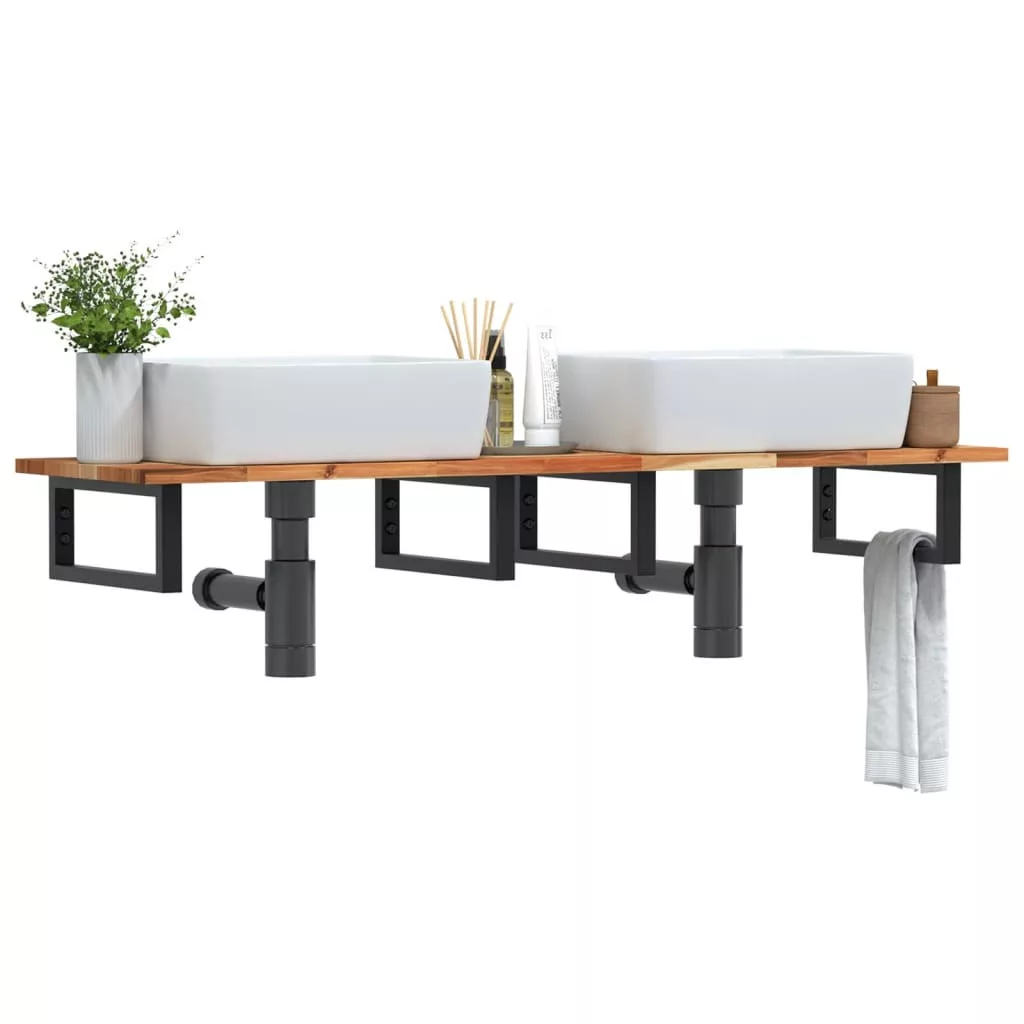 acél és tömör akácfa falra szerelhető mosdópolc