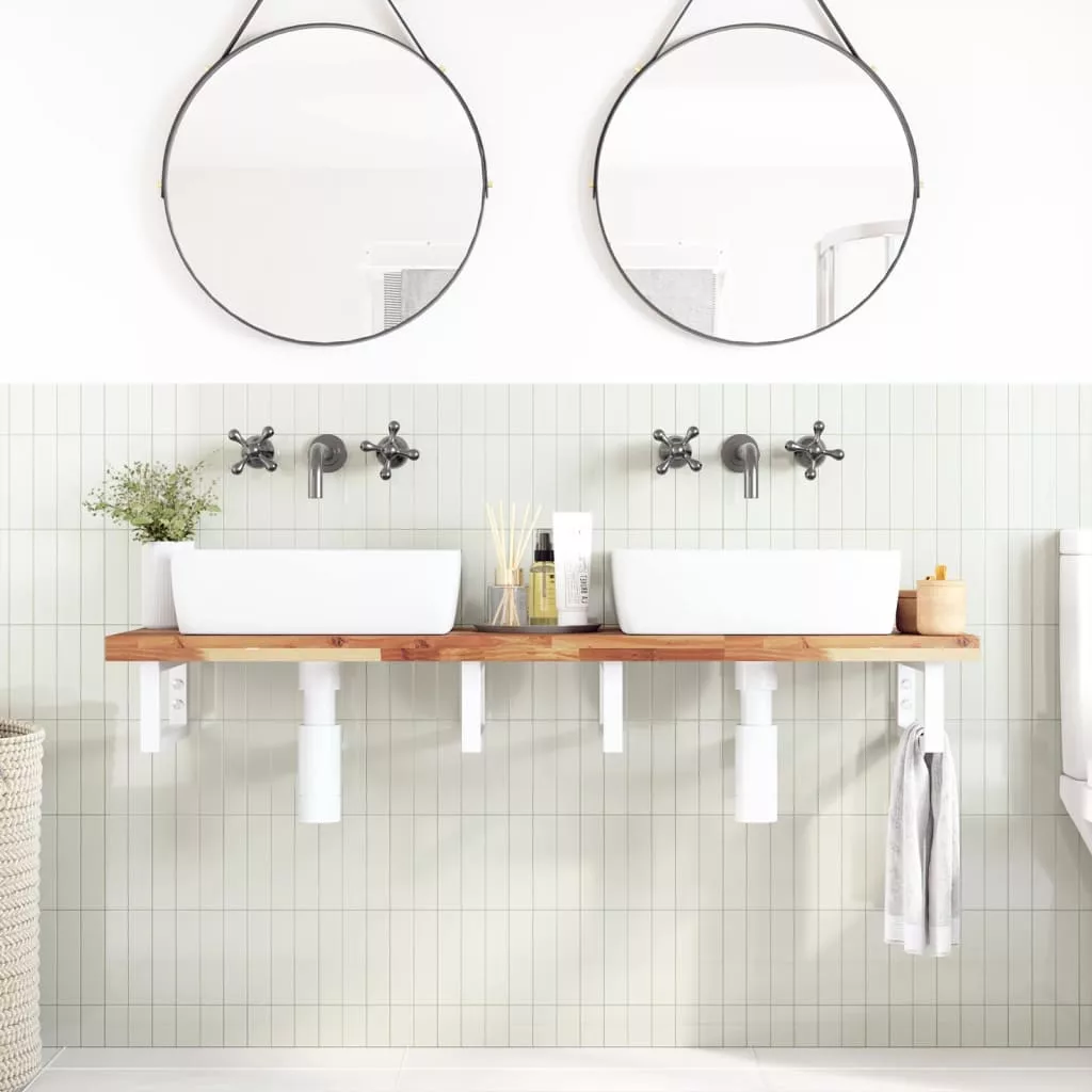 A falra szerelhető mosdópolc biztonságosan a falhoz rögzíthető, elegáns és helytakarékos megoldást nyújtva fürdőszobájának. Erős és tartós: Ez a mosdópolc acélszerkezettel és tömör akácfa lappal lett ellátva, így erős, stabil és hosszú élettartamú.Helytakarékos: A lebegő mosdókagylópolcon bőséges hely van krémek és apróbb tárgyak tárolására. A téglalap alakú formának köszönhetően törölközőket vagy egyéb dolgokat akaszthat a tartóra, hogy helyet takarítson meg.Könnyen használható: A munkalap fúratlan, így a mosdó balra, jobbra vagy középre szerelhető, a helyiség igényeitől függően. A tartóba előre fúrt furatoknak köszönhetően könnyen összeszerelhető az asztallappal és a falra szerelhető.Széleskörű felhasználási terület: Modern kialakításának köszönhetően további helyet biztosít különféle típusú fürdőszobáknak. Jó tudni:A csavarokat nem tartalmazza, a csavarokat megvásárolhatja külön az alábbi információk alapján.Fali rögzítés: konzolonként 2 db M8 feszítőcsavarFa lap: 2 db M5x18 csavar (T=2) vagy 2 db M5x20 csavar (T=2,5/4cm) konzolonként