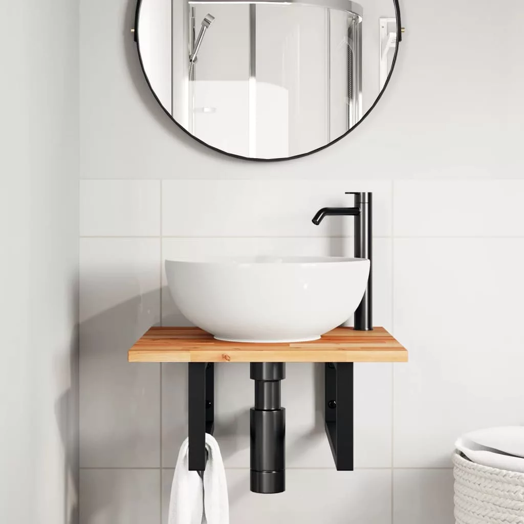 acél és tömör akácfa falra szerelhető mosdópolc